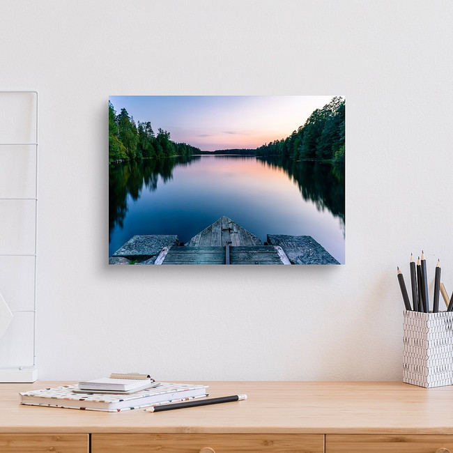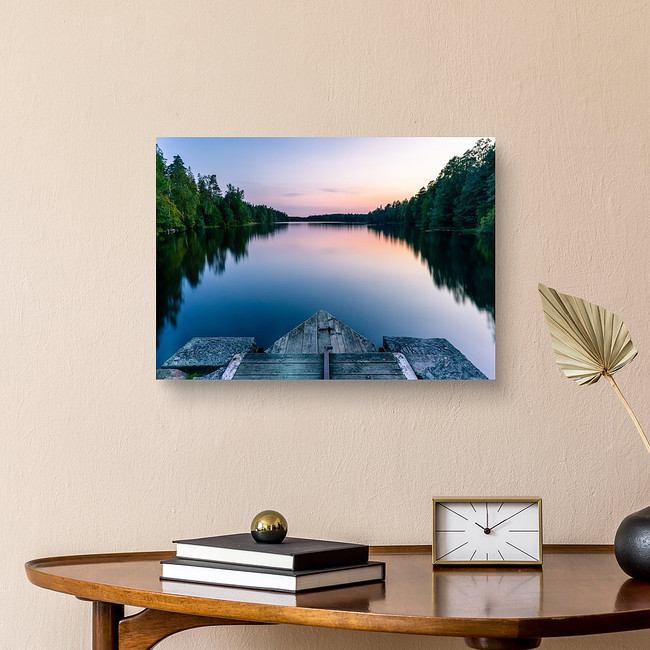 A Calm And Silent Evening At Sunset At A Small Forest Lake In Sweden Canvas Print