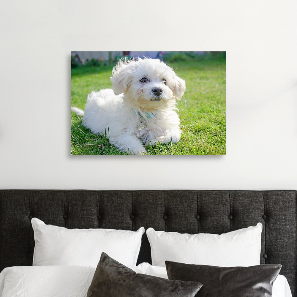 A Cavapoo Puppy Lying Down Outside On The Floor On A Lawn In A Garden Canvas Print