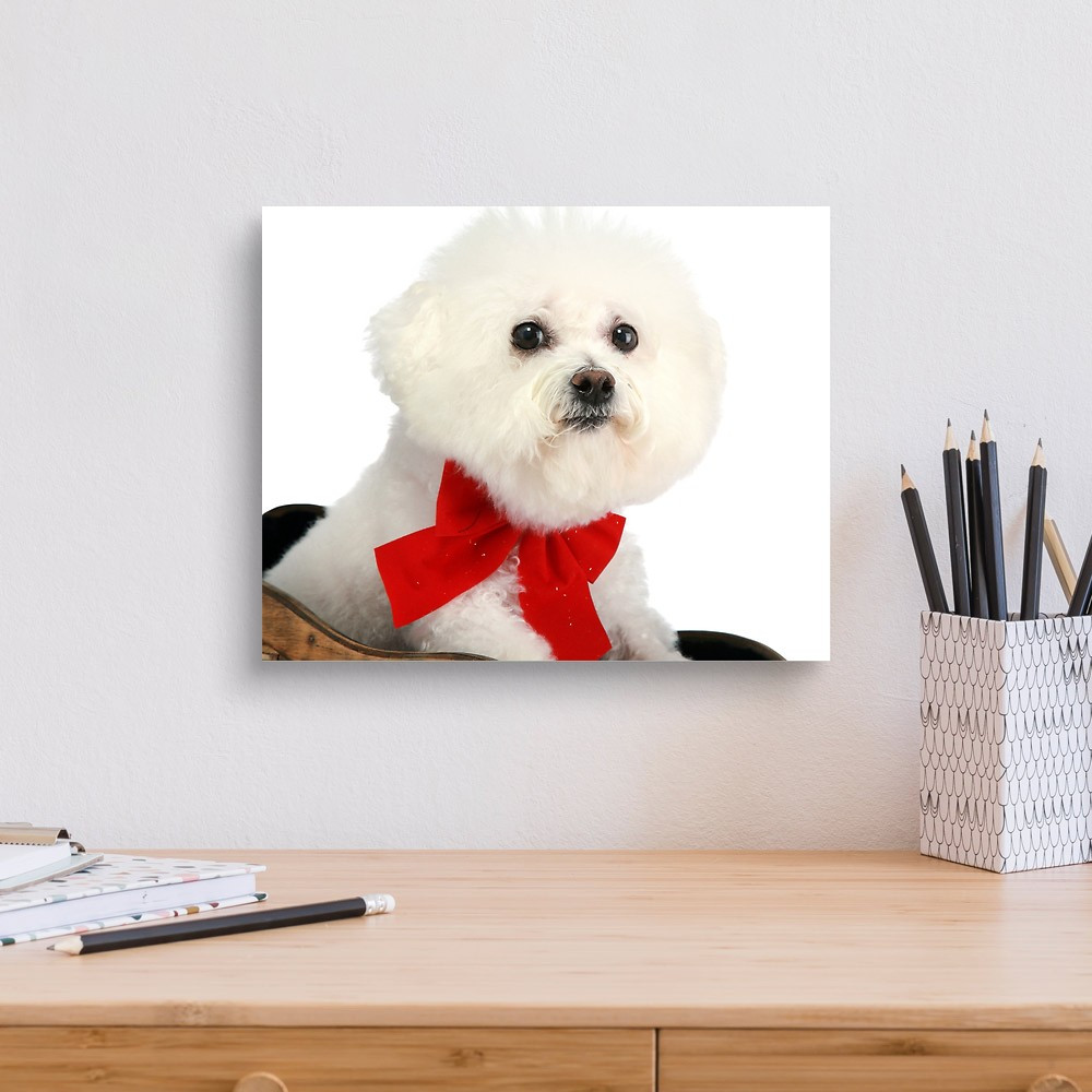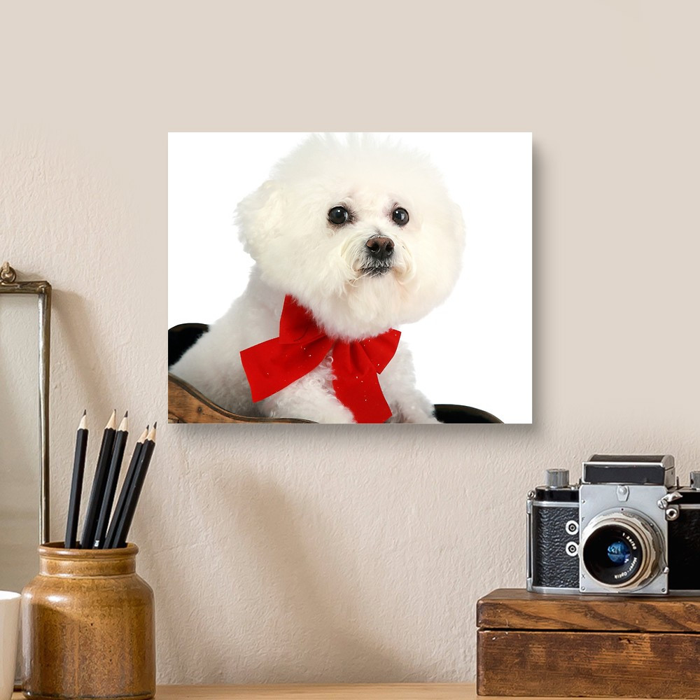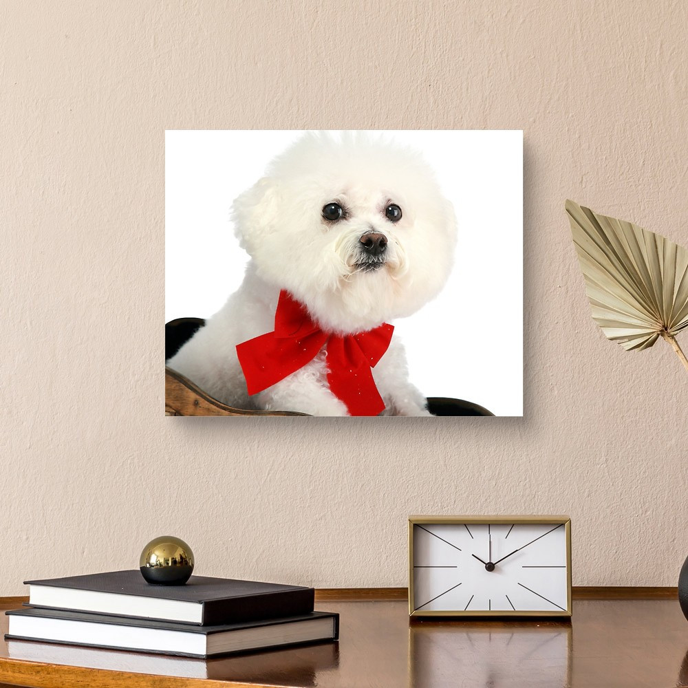 A Pure Breed "Bichon Frise" With A Red Bow, "isolated On White" With Canvas Print