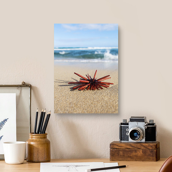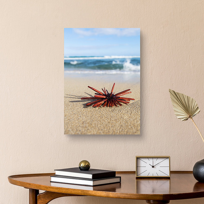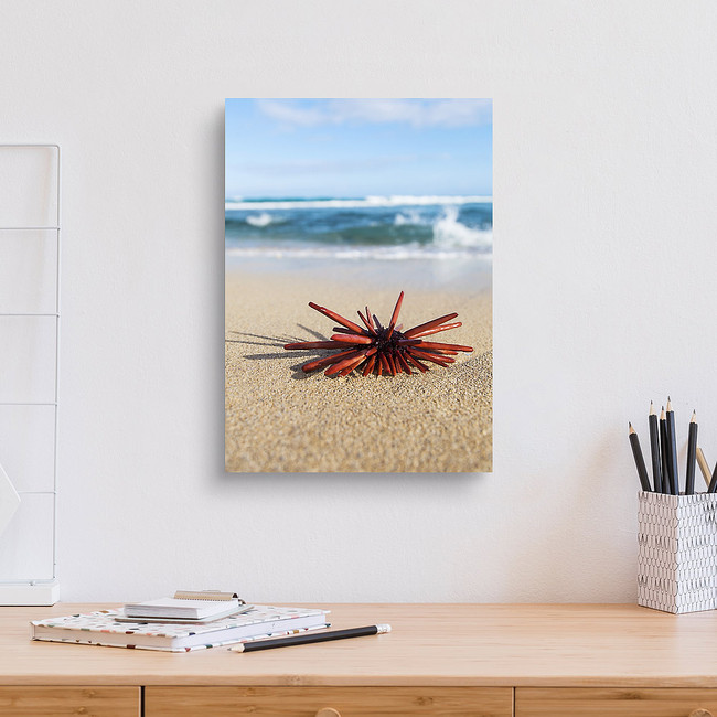 A Red Slate Pencil Urchin (Heterocentrotus Mamillatus) Sounds On The Sand At The Beach; Honolulu, Oahu, Hawaii, United States Of America