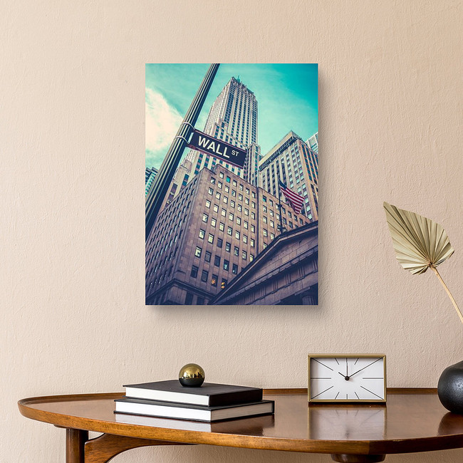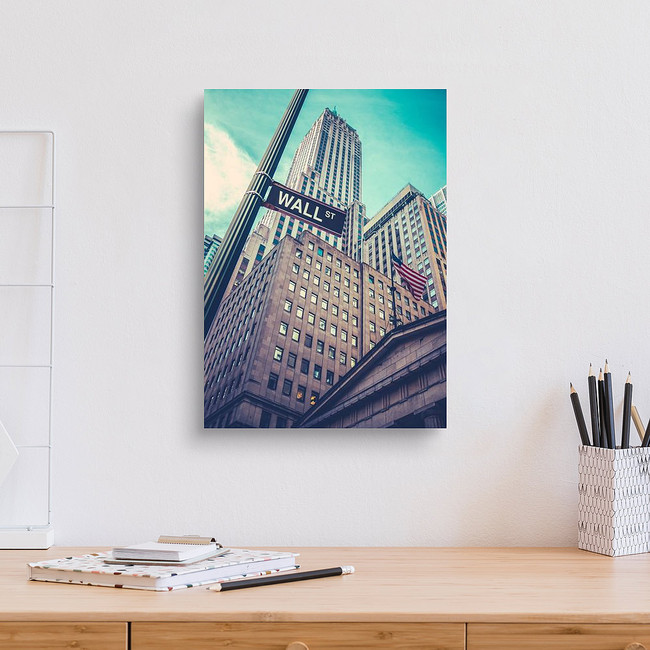 A Sign For Wall Street In Lower Manhattan, New York, With Skyscrapers... Canvas Print