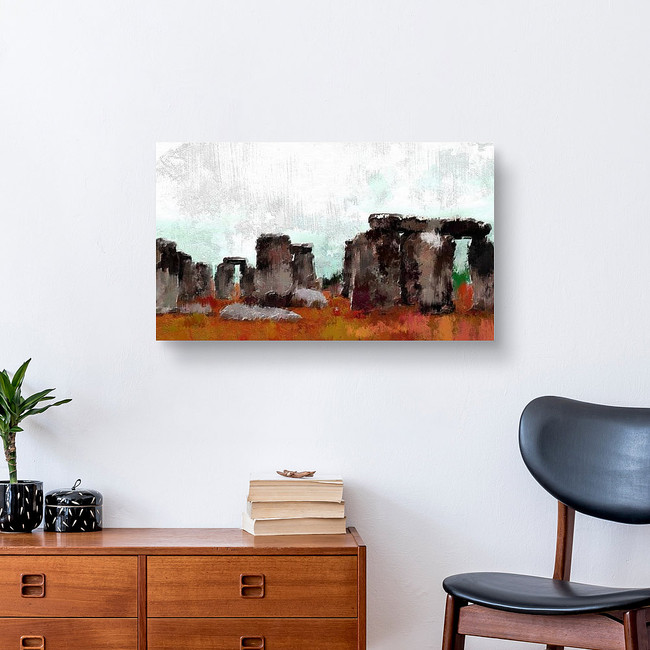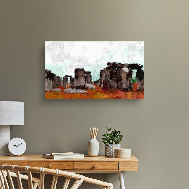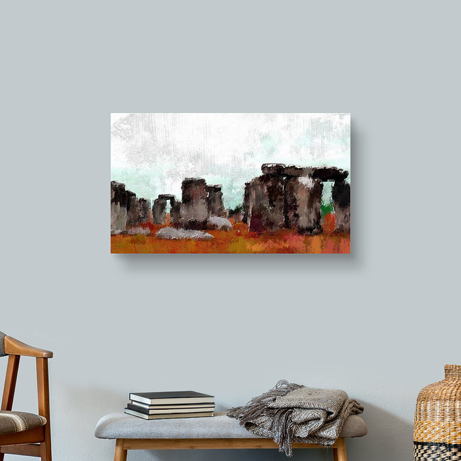 Abstract Digital Painting Of Stonehenge, Oil On Canvas Texture Canvas Print