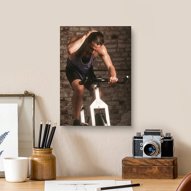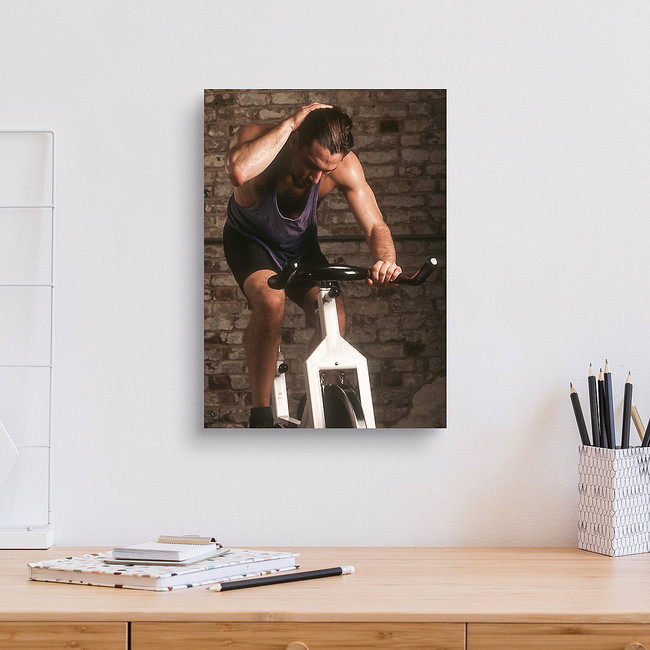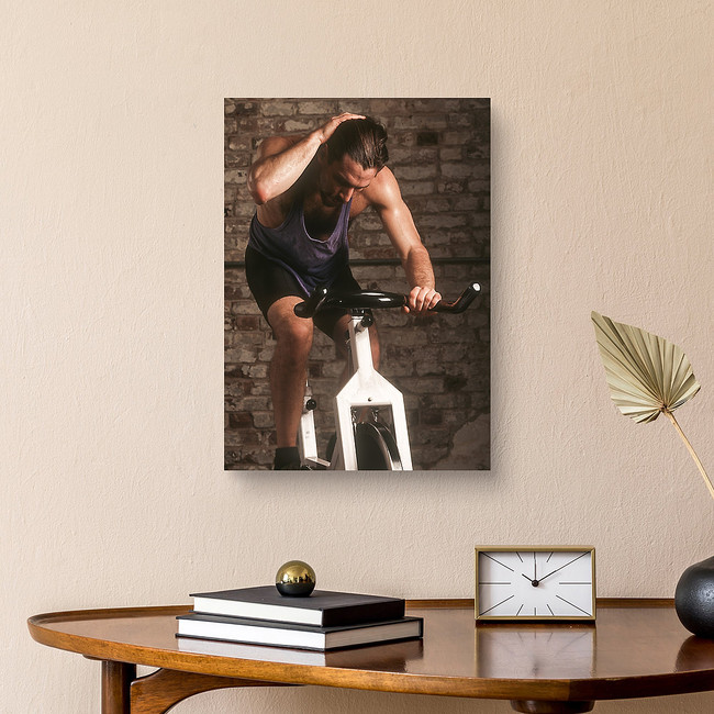 Adult Male Exercising On A Stationary Bike Canvas Print