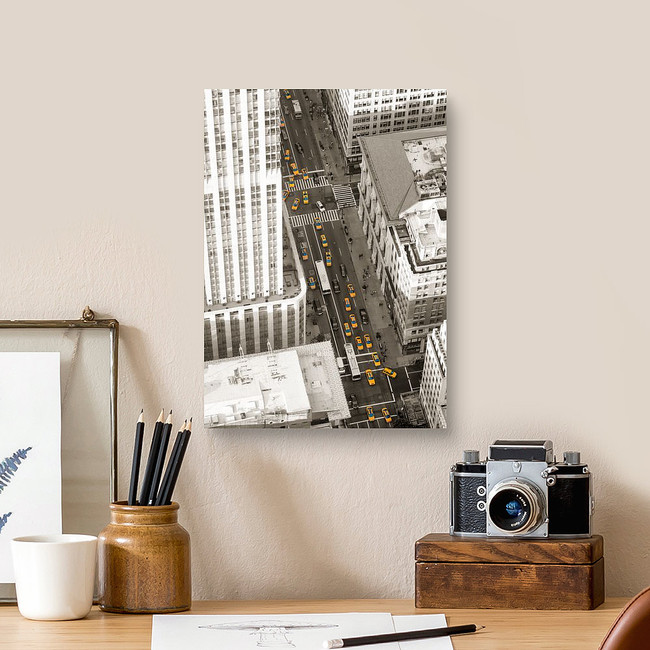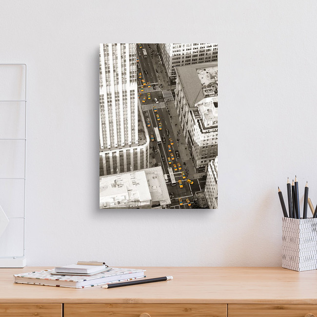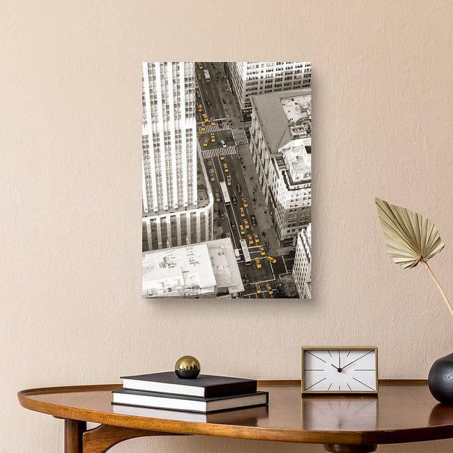 Aerial Black And White View Of New York City With Lots Of Yellow Cabs Canvas Print