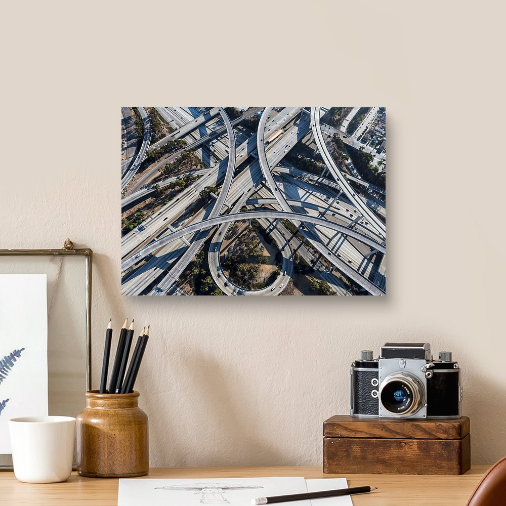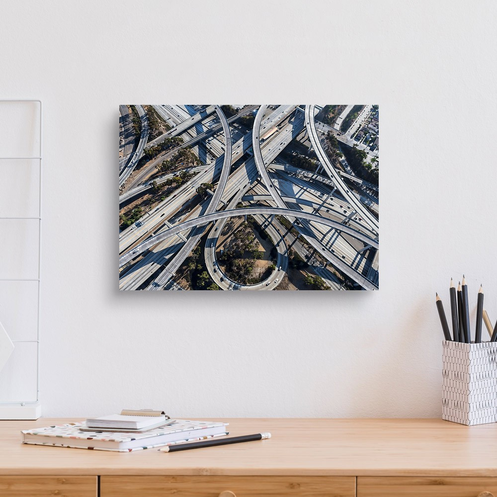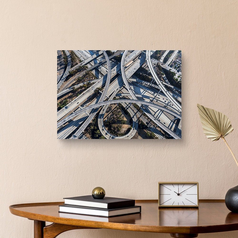 Aerial View Of The 110 And 105 Freeway Interchange Ramps And Bridges Canvas Print