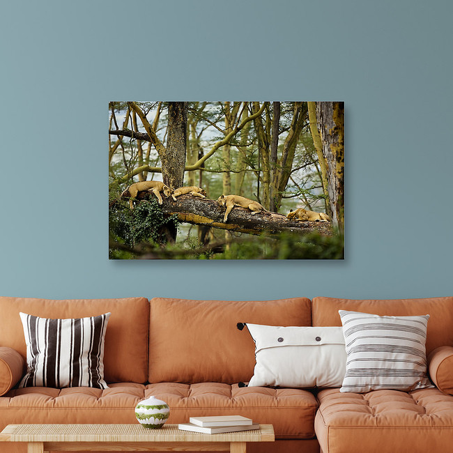 African Lions Sleeping In The Forest Canvas Print
