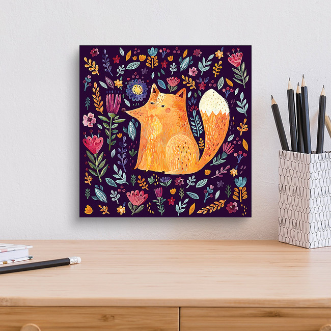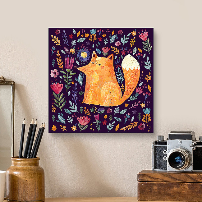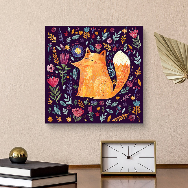 Amazing Colorful Art Vector Illustration With Cute Fox And Flowers... Canvas Print