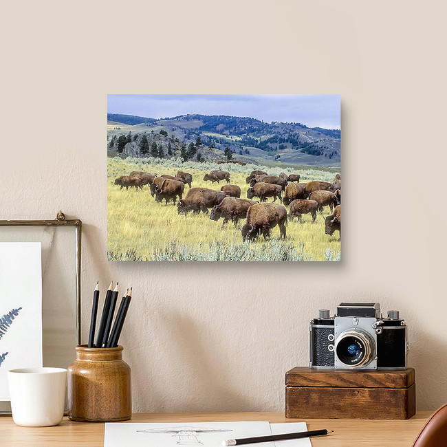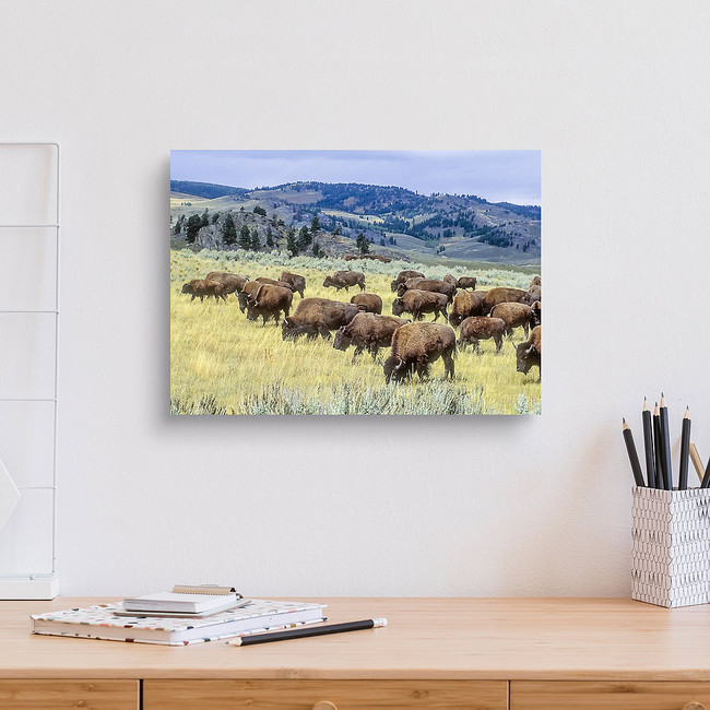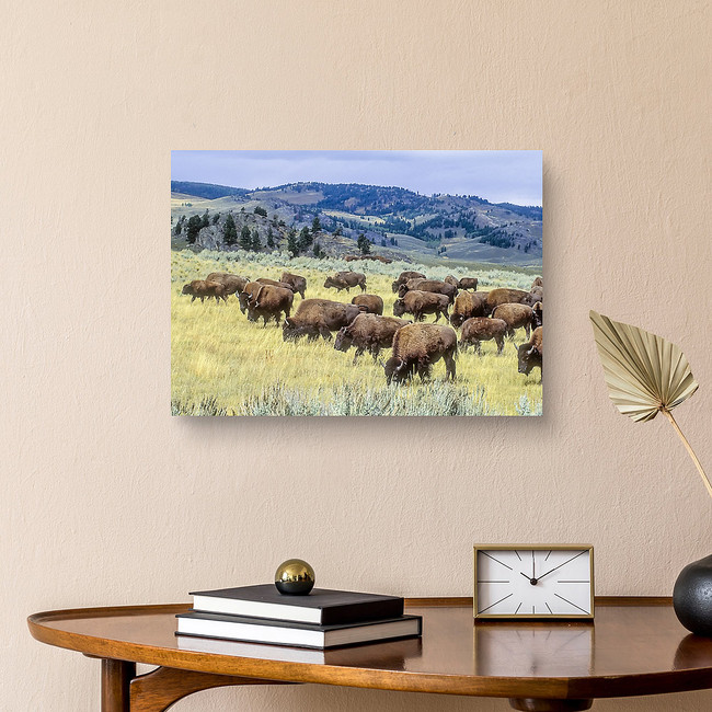 American bison grazing on the grasses on the open range, YNP, Wyoming, USA Canvas Print