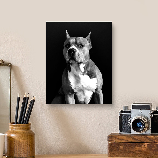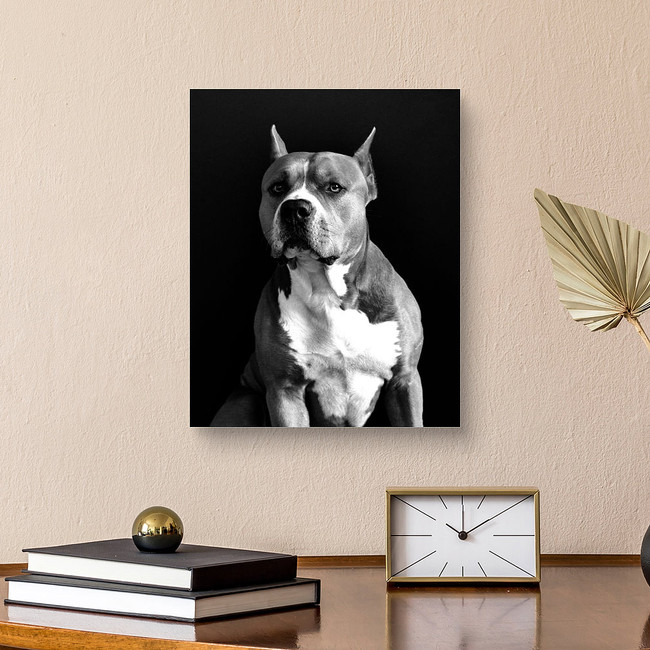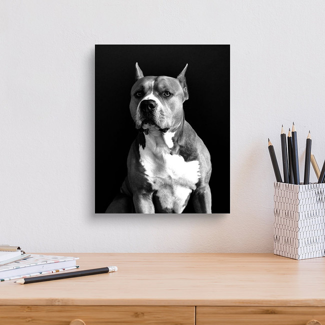 American Staffordshire Terrier Black And White Portrait Image With... Canvas Print