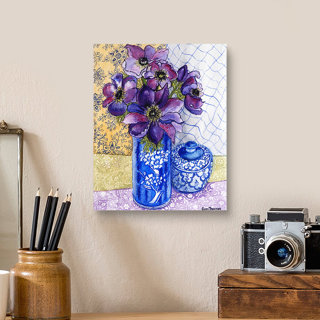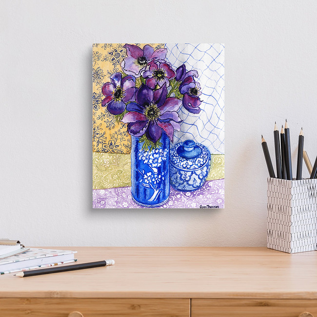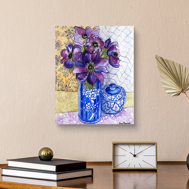 Anemones in a Blue and White Vase with Pot and Textiles 2012 (w/c on paper) Canvas Print