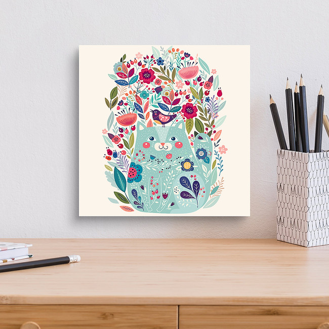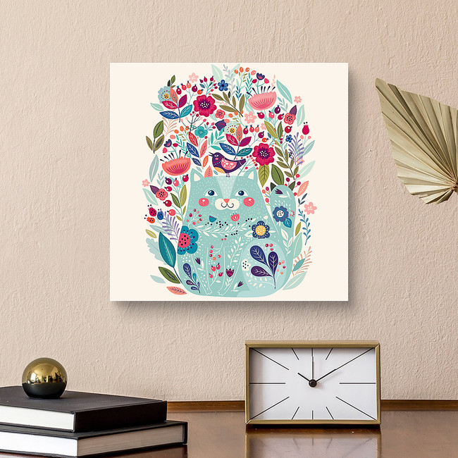 Art Vector Colorful Illustration With Beautiful Cat, Bird And Flowers Canvas Print
