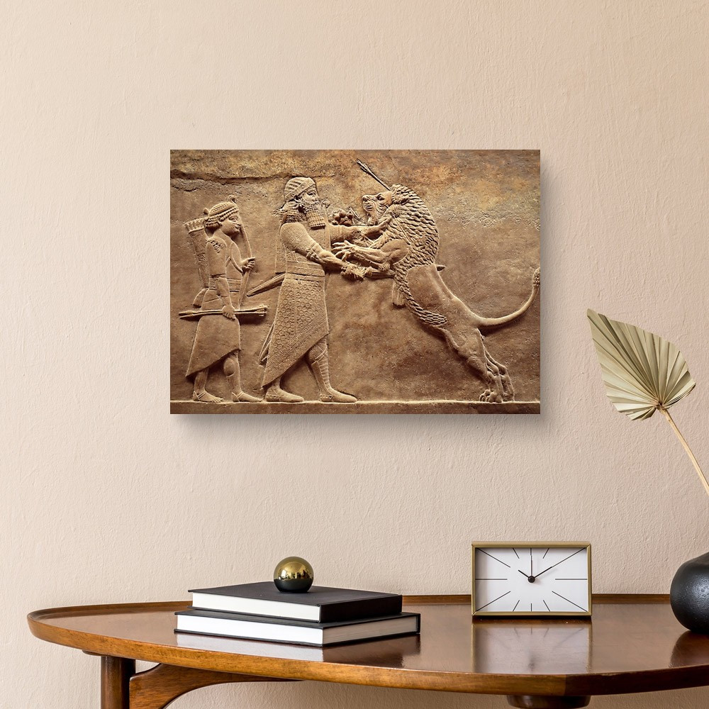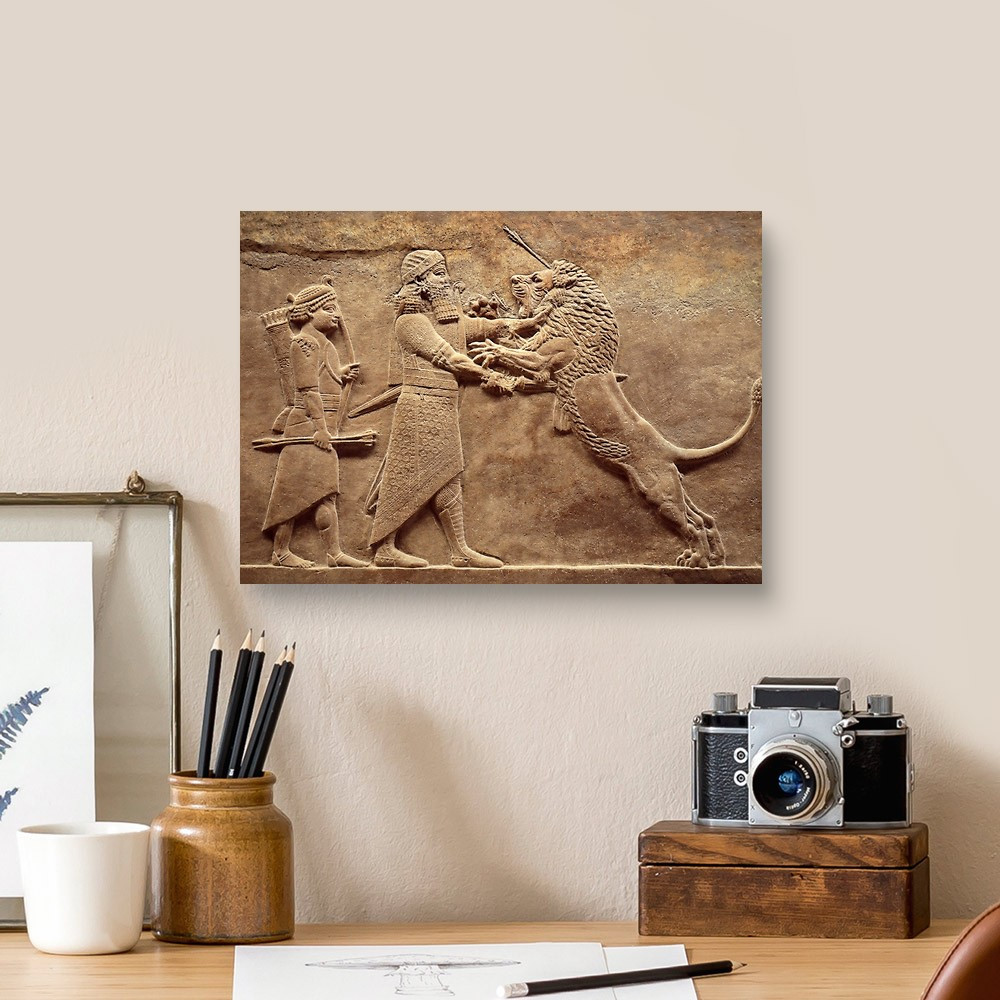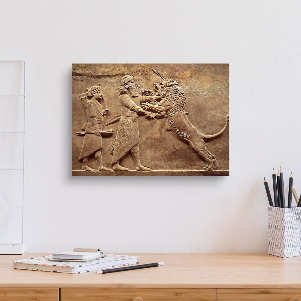 Assyrian Wall Relief, Detail Of Panorama With Royal Lion Hunt Canvas Print