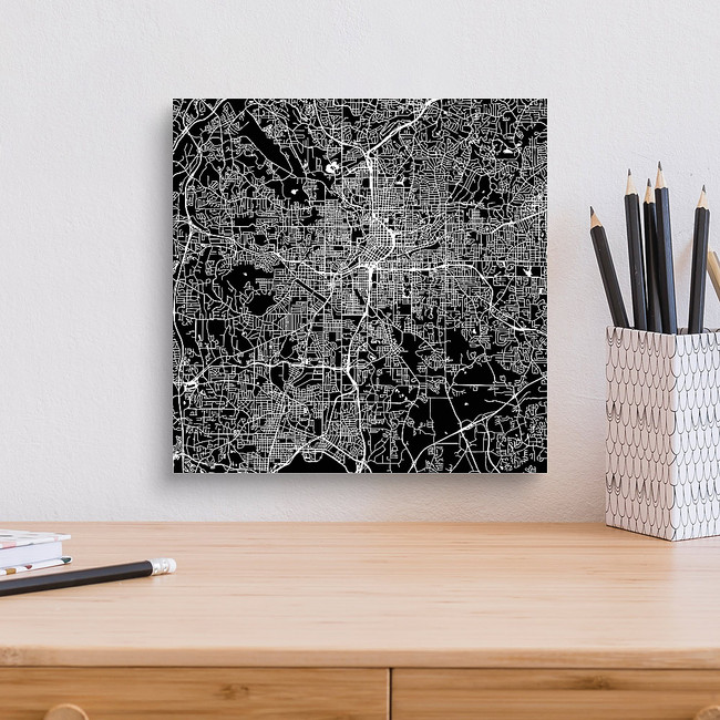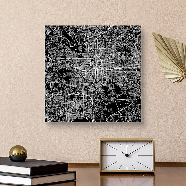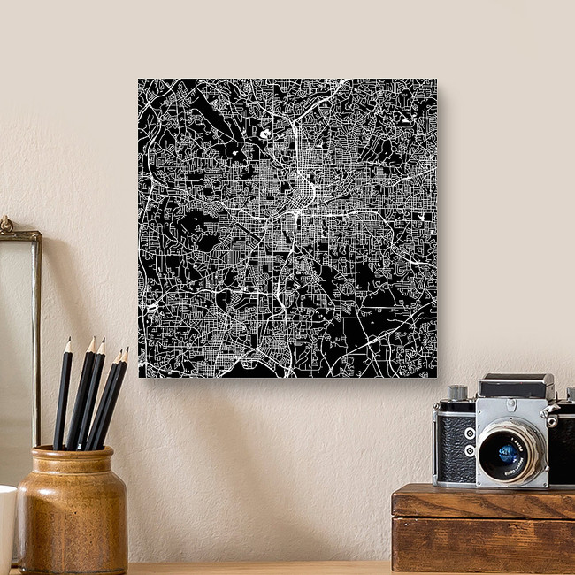 Atlanta Vector Map, Artprint. Black Landmass, White Water And Roads Canvas Print