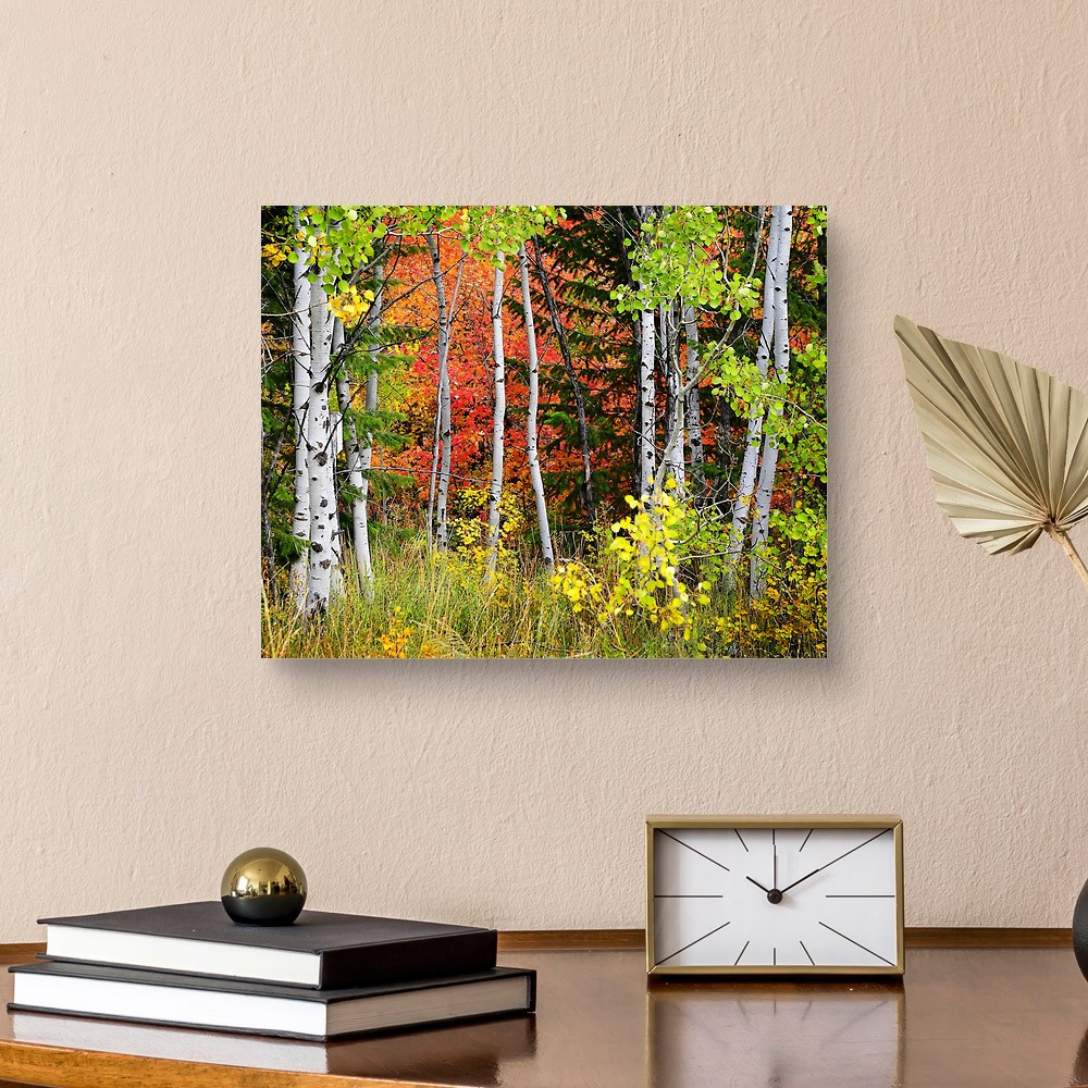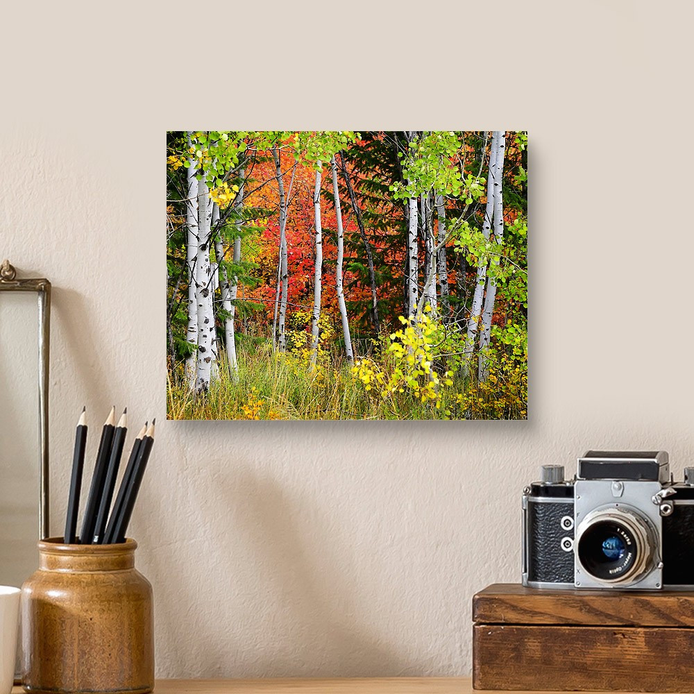 Autumn Foliage Including Birch And Maple Trees With Pine Forest Canvas Print
