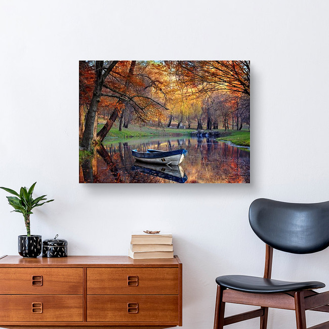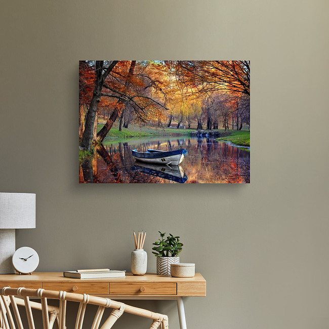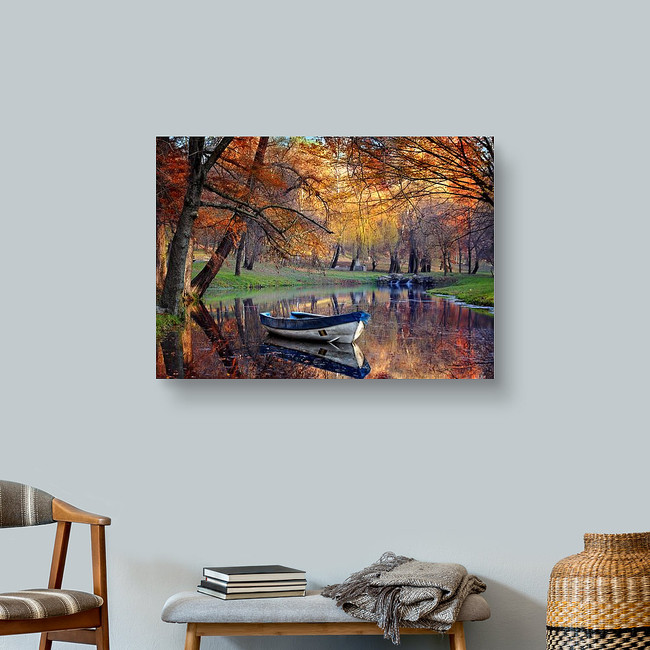 Autumn Landscapenature Backgroundboat Forest Canvas Print