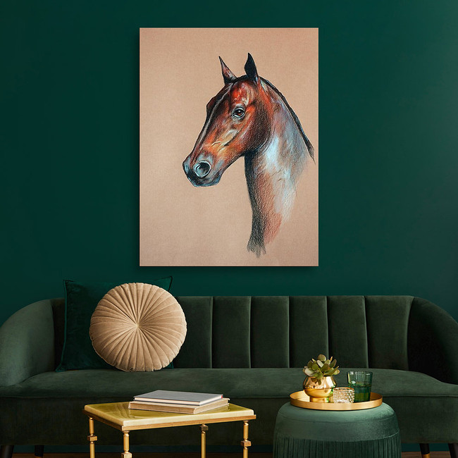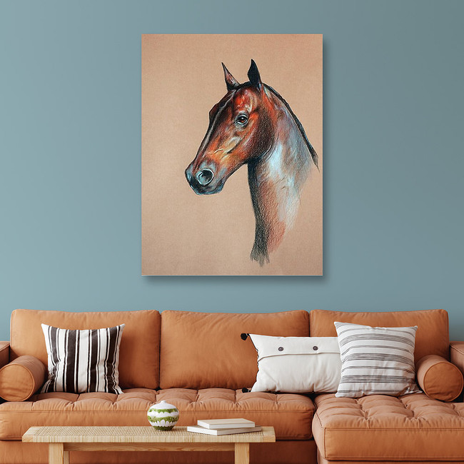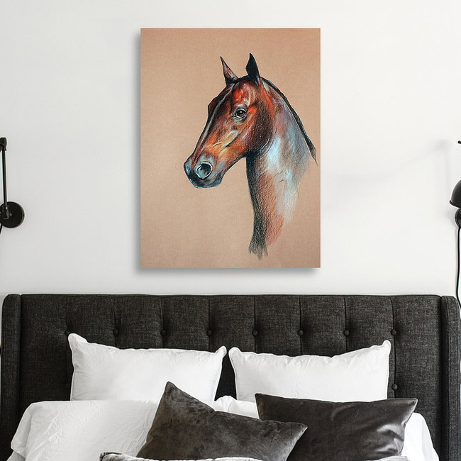 Bay Horse Head Pastel Drawn Canvas Print