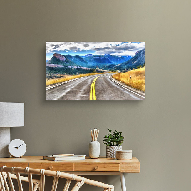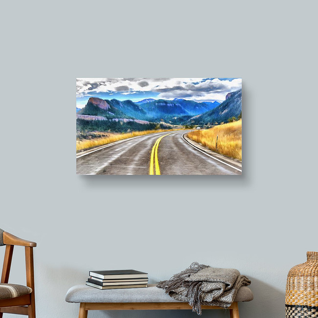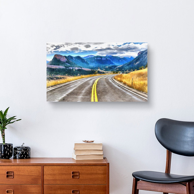Beautiful Mountain Landscape With Asphalt Road Colorful Painting... Canvas Print