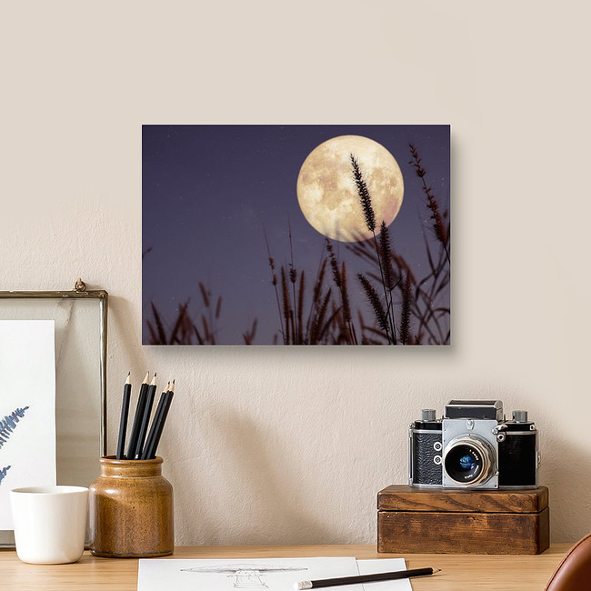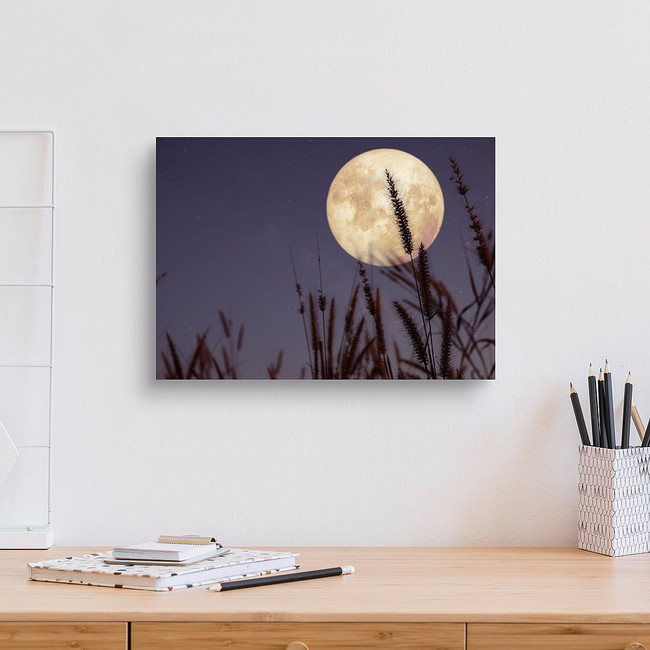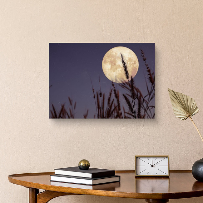 Beautiful Nature Fantasy - Wild Grass And Full Moon With Star Canvas Print