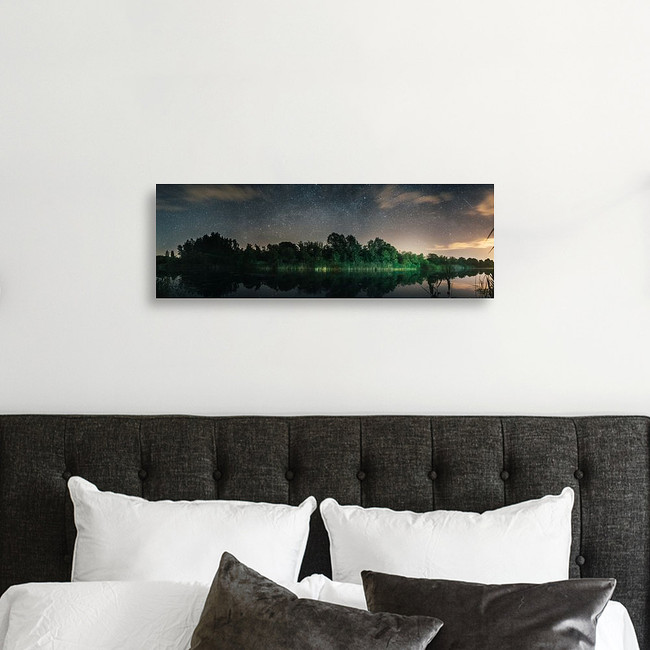 Beautiful Panoramic View On Lake And Forest At Night Looking At Stars... Canvas Print