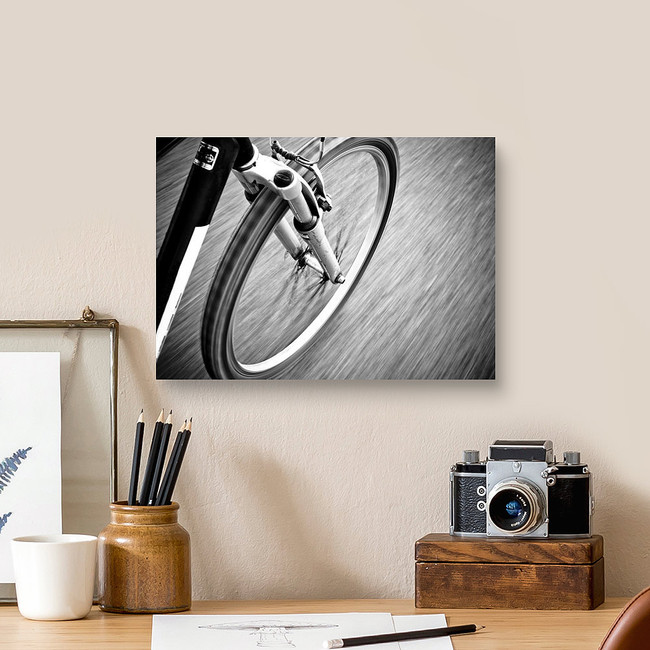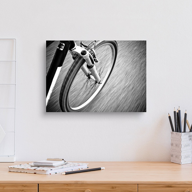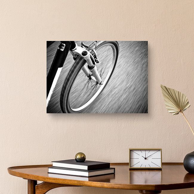 Bicycle In Motion On Road Black And White Photography Shallow Focus Canvas Print