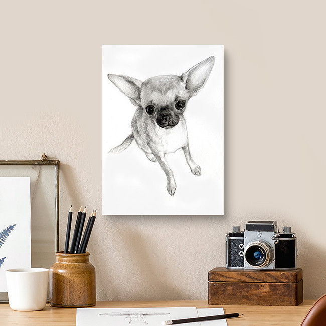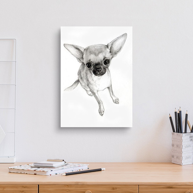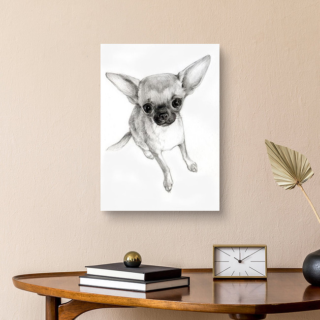 Black And White Pencil Drawing On Paper, Dog, Small Pet, Chihuahua... Canvas Print