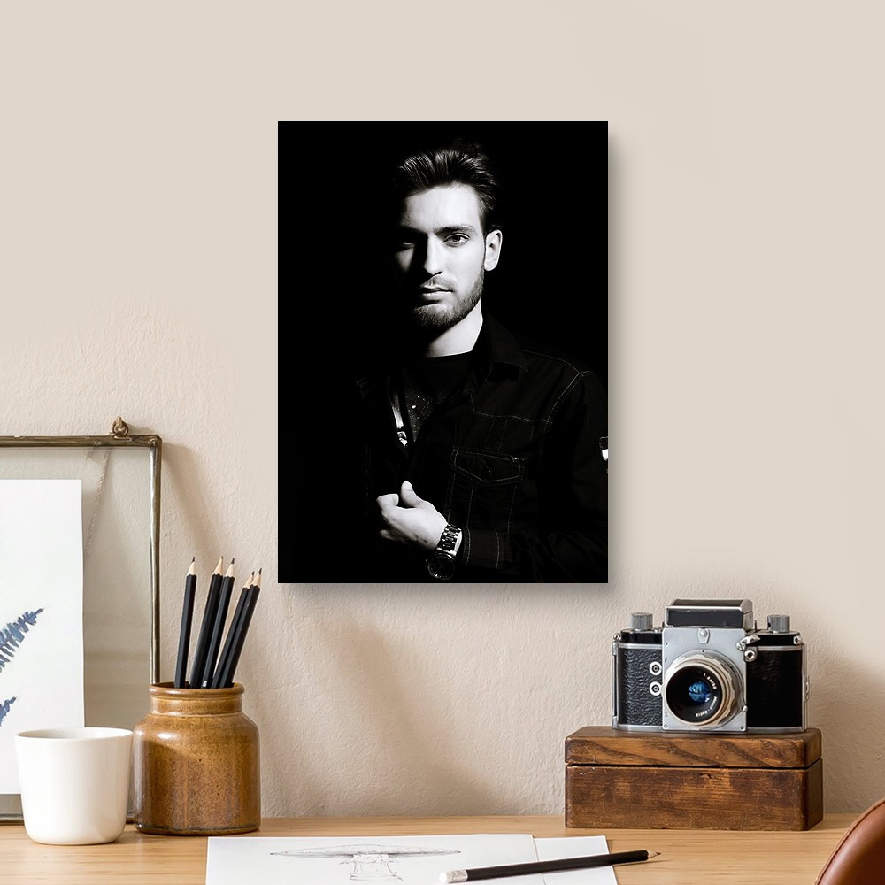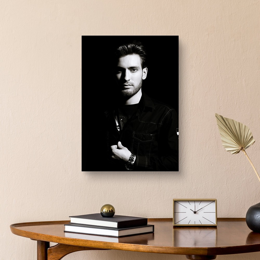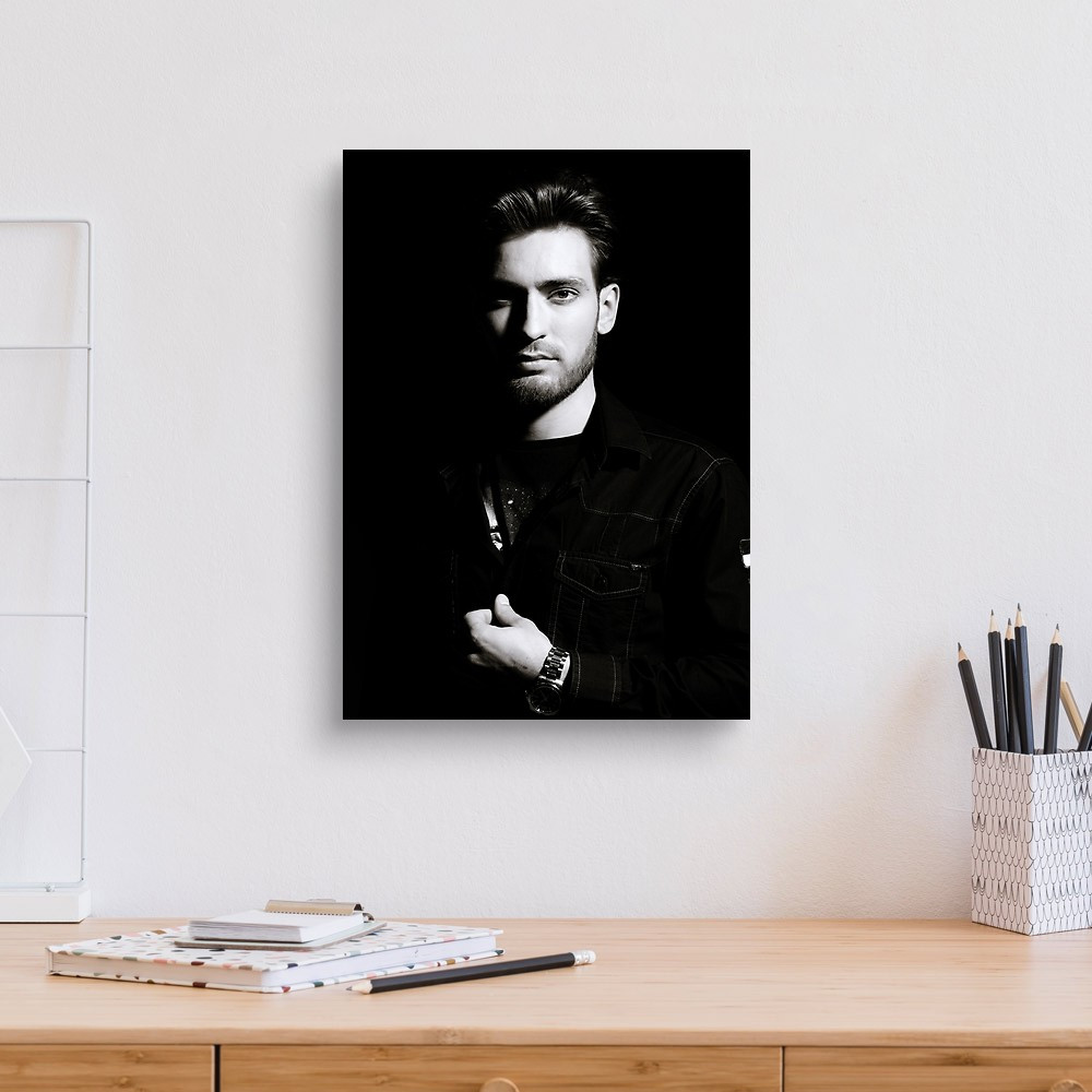 Black-and-white Portrait Of A Handsome Young Man Canvas Print