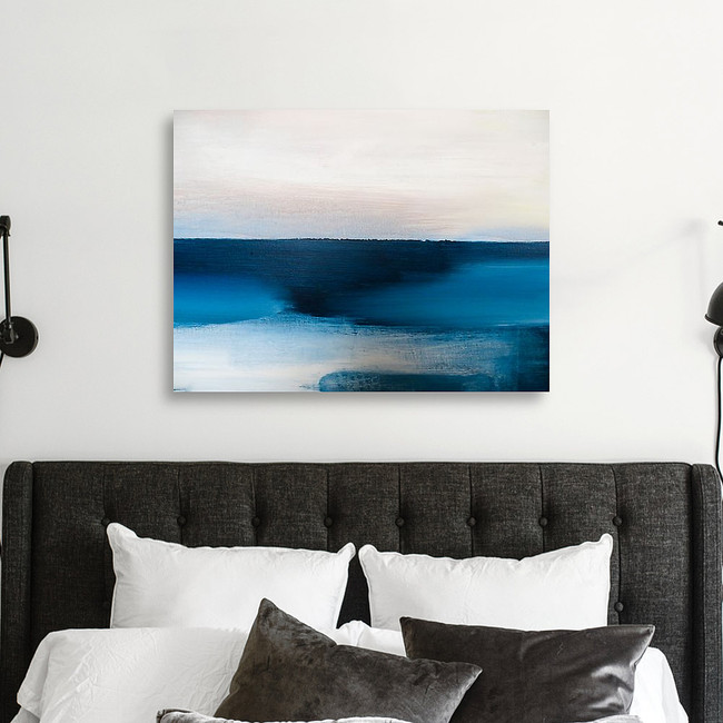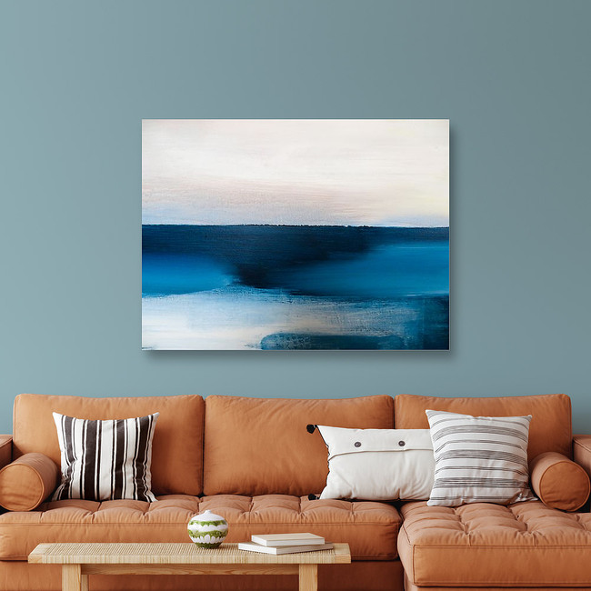 Blue And Grey Abstract Art Painting Background. Painting Blue Sea Canvas Print