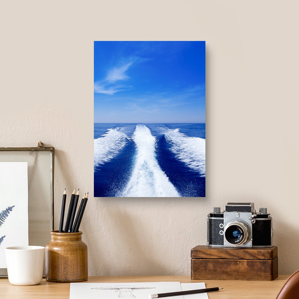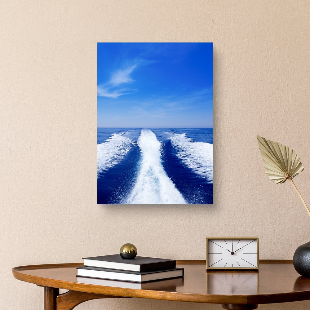 Boat Wake Prop Wash On Blue Ocean Sea In Sunny Day Canvas Print