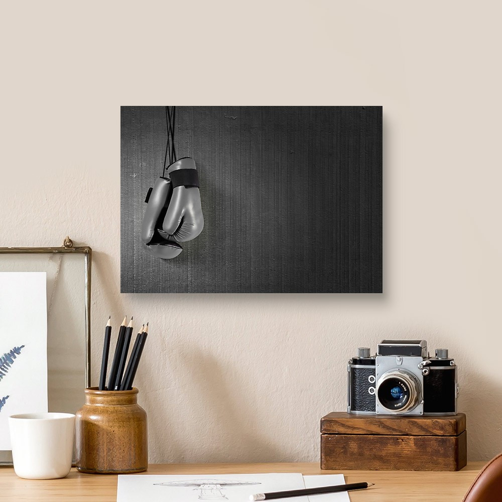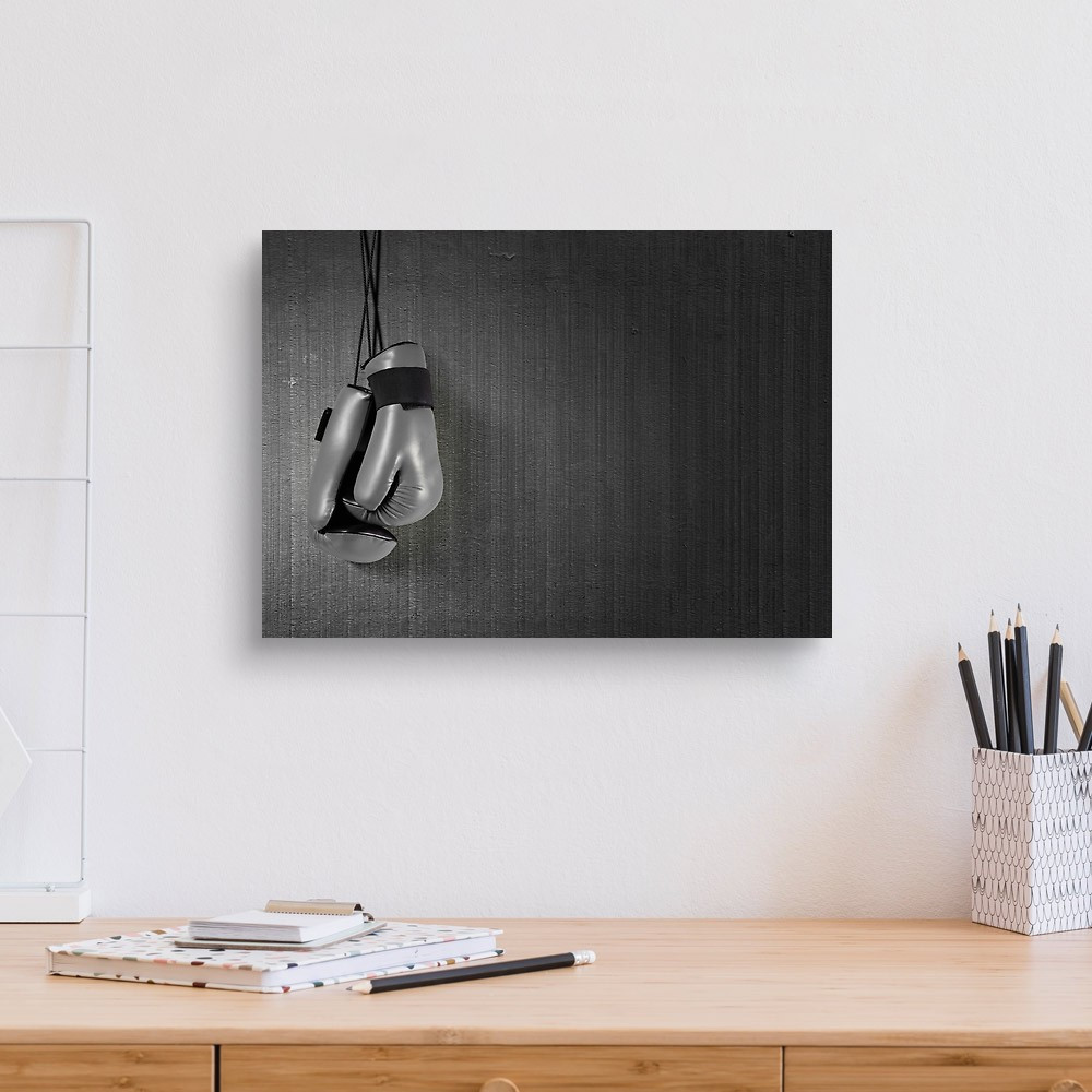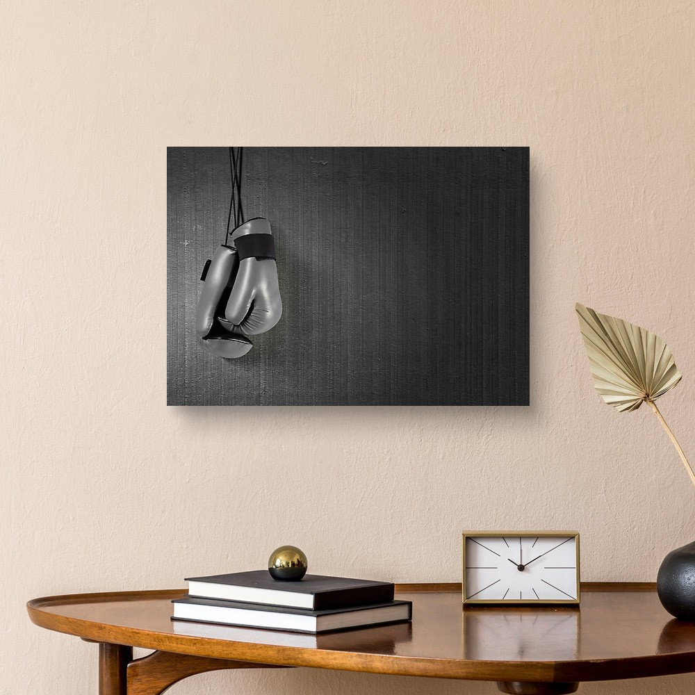 Boxing Gloves Hanging On Nail On Wall Canvas Print