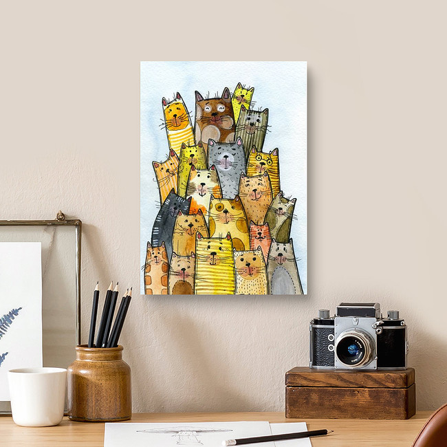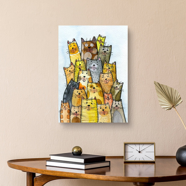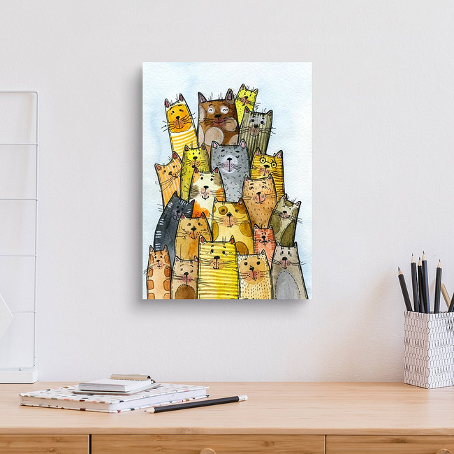 Cats Pile - Watercolor Hand Drawn Illustration Of A Pile Of Cute Cats Canvas Print