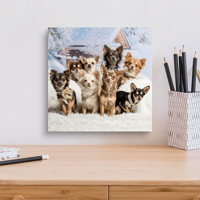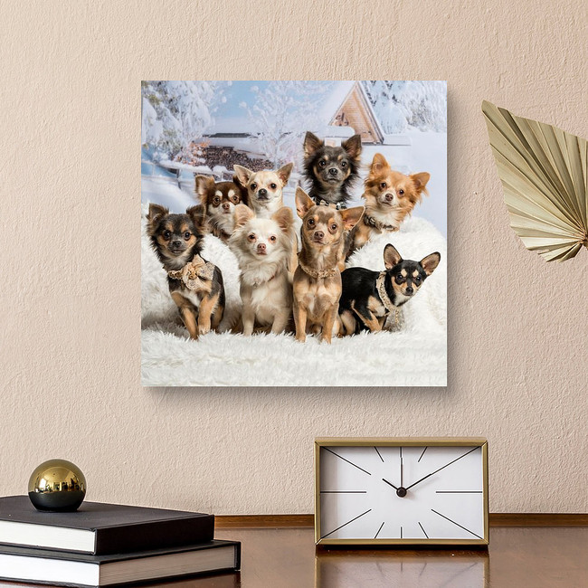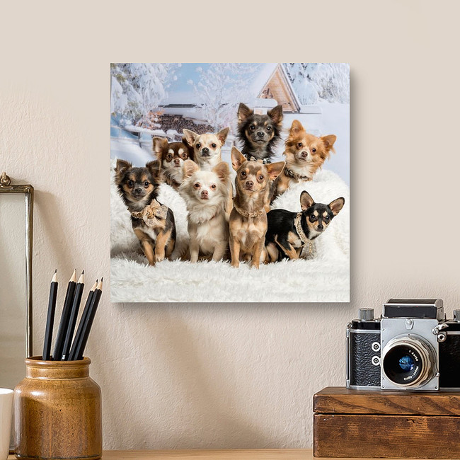 Chihuahuas Sitting Together In Winter Scene, Portrait Canvas Print