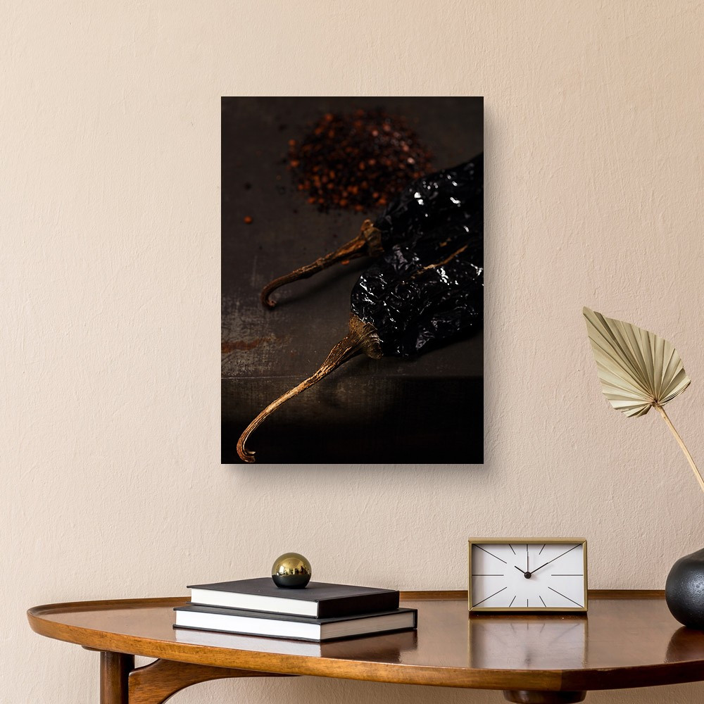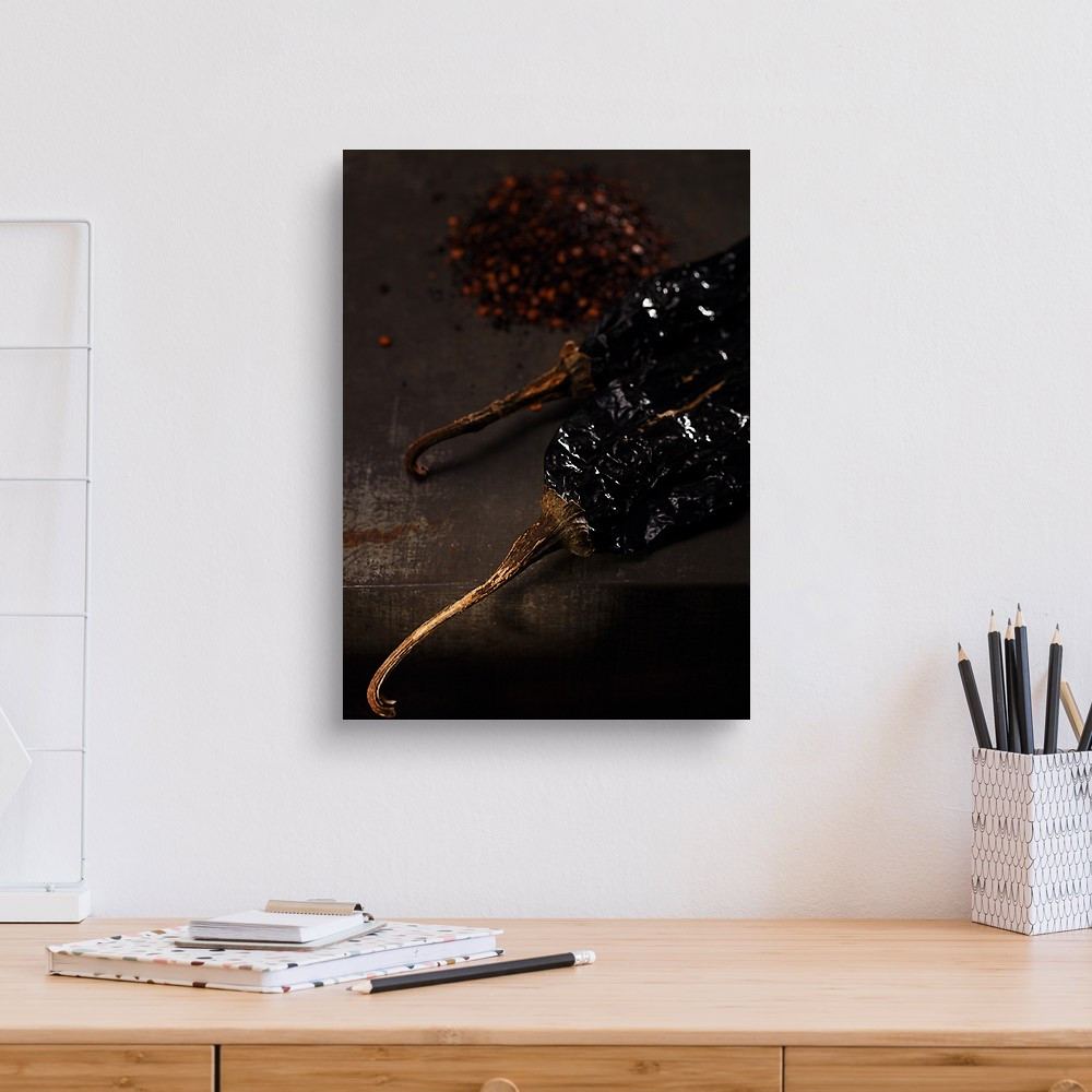 Chipotle - Jalapeno Smoked Chili Flakes And Whole On Metal Background Canvas Print
