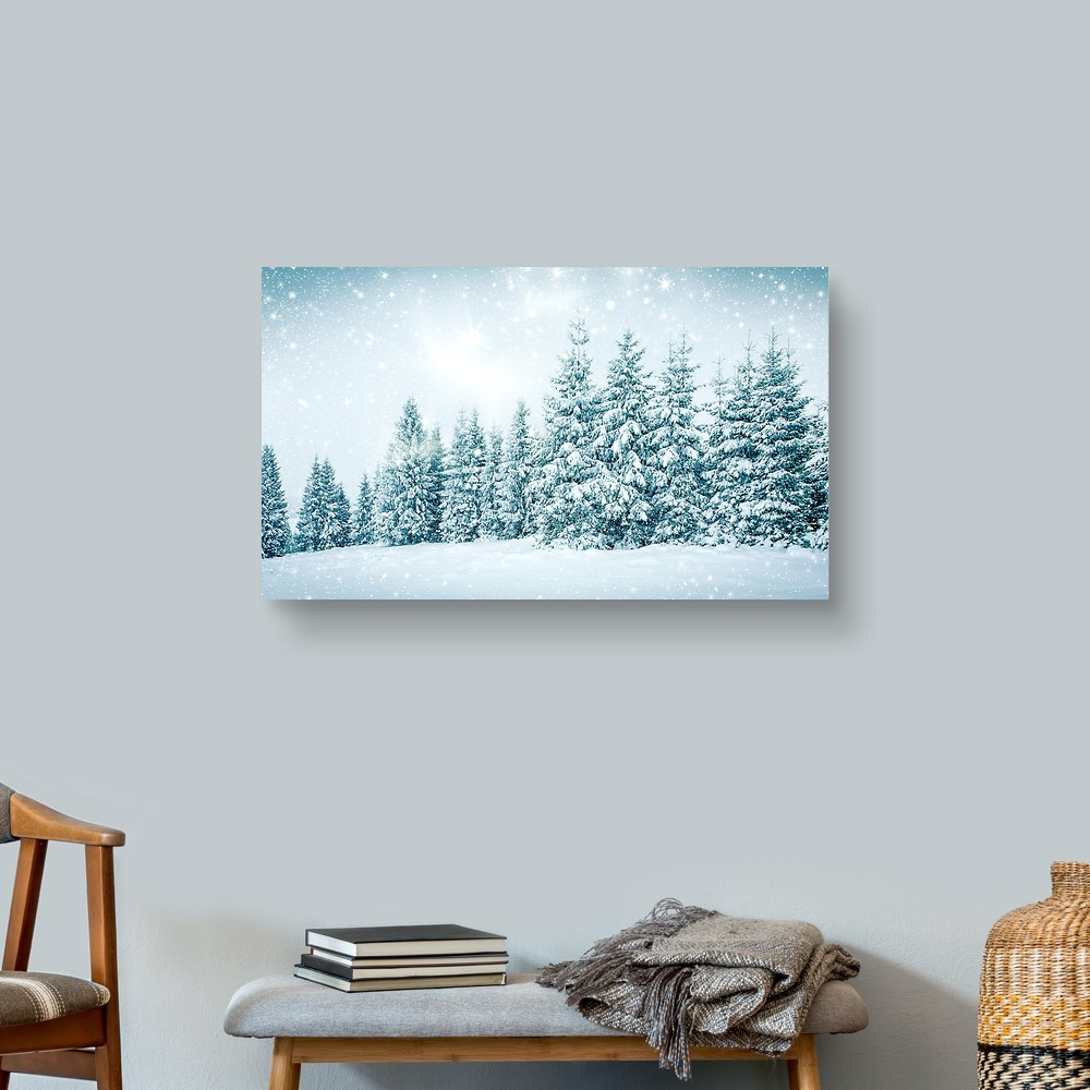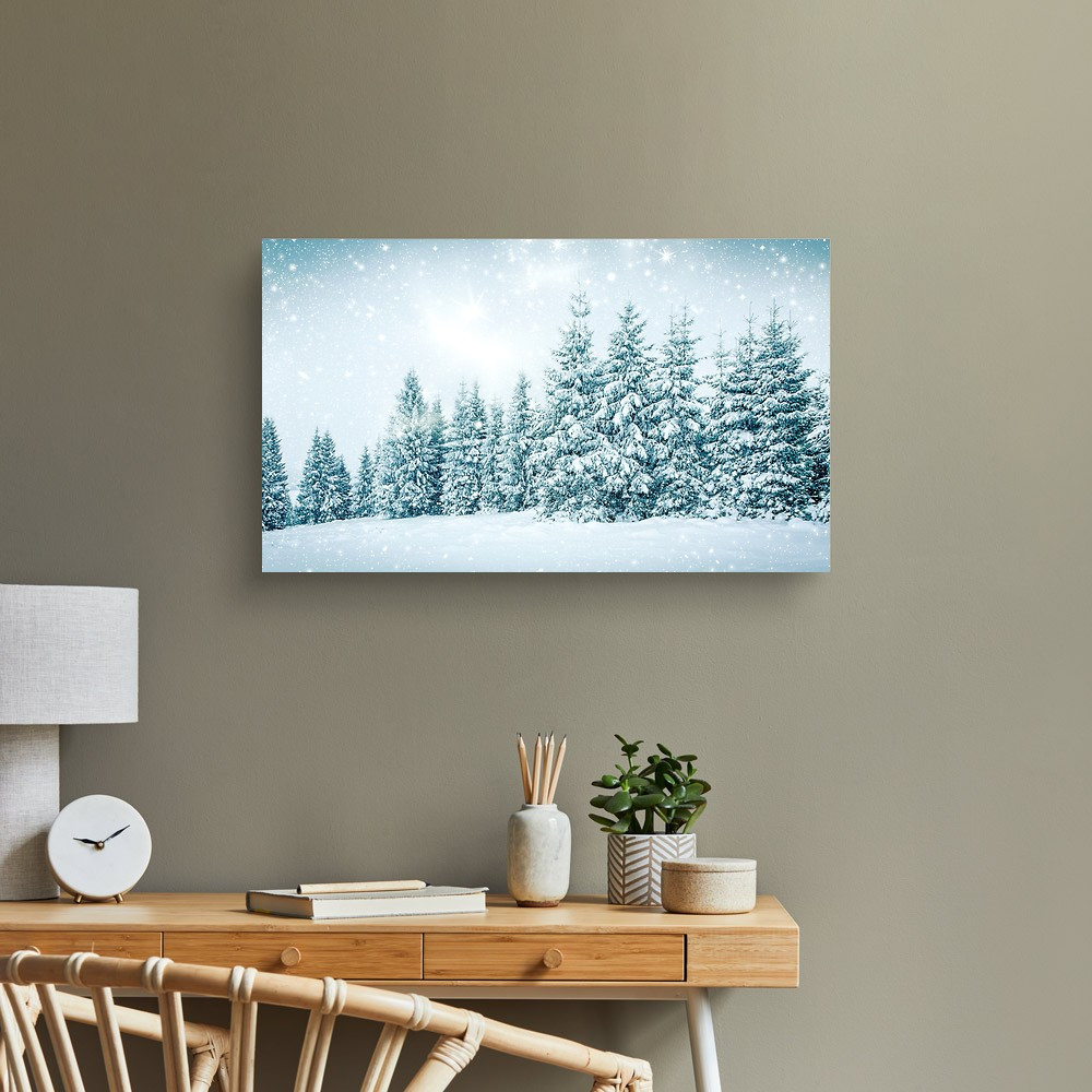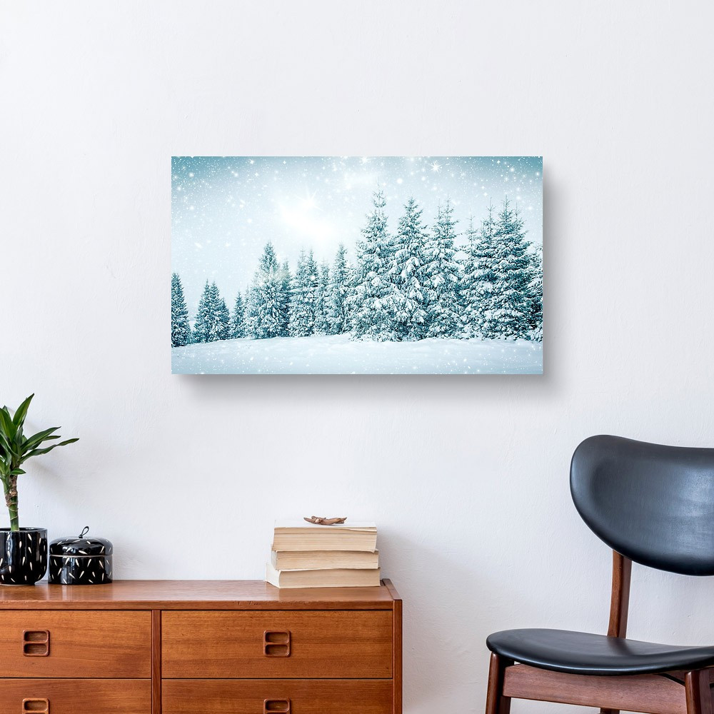 Christmas Background Of Snowy Winter Landscape With Snow Or Hoarfrost Canvas Print