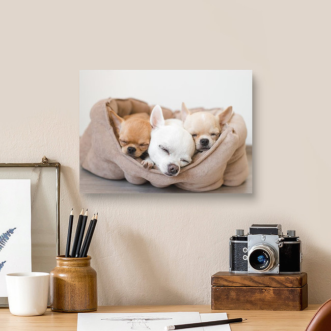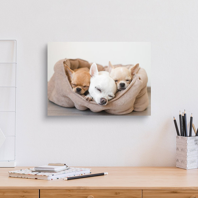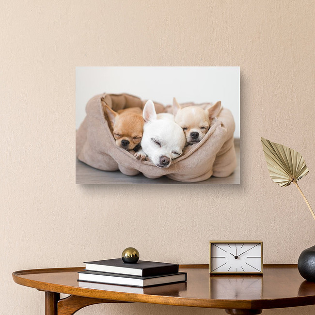 Closeup Of Three Lovely, Cute Domestic Breed Mammal Chihuahua Puppies... Canvas Print