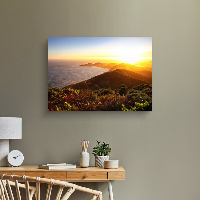 Your canvas art print will arrive ready-to-hang. Each kiln-dried pine frame is meticulously fitted with high-quality hardware designed to protect and secure your canvas. Our craftspeople select either a metal sawtooth hangar or a plastic-coated stainless steel hanging wire, depending on the size. Larger canvas prints also come with corner braces and a middle stabilizer for added protection.