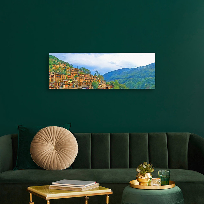 Color Paintings Scenic Panoramic View Village Of Masouleh In Iran On... Canvas Print