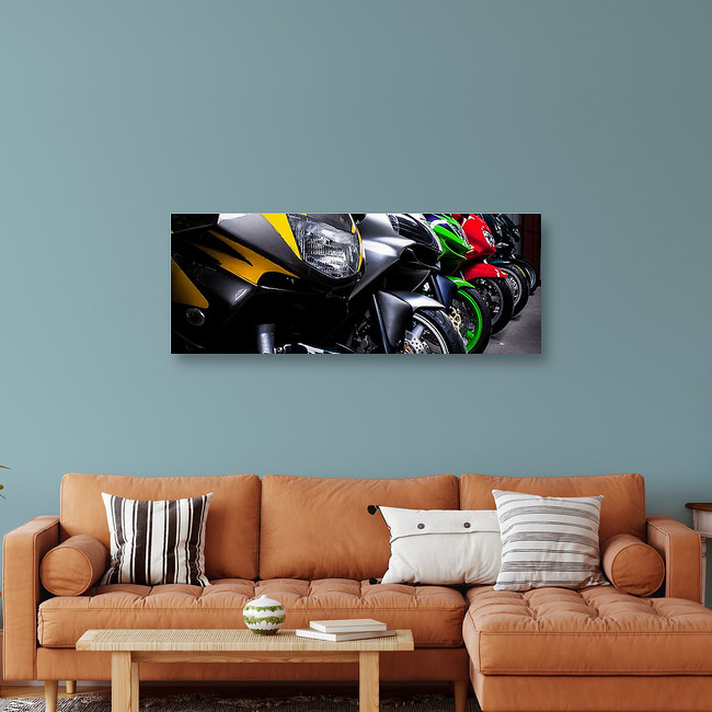 Colored Sports, Road Beautiful Bikes In A Motor Show, Close Up Canvas Print