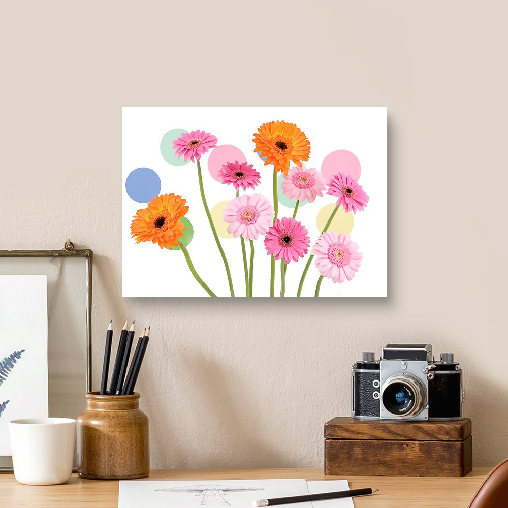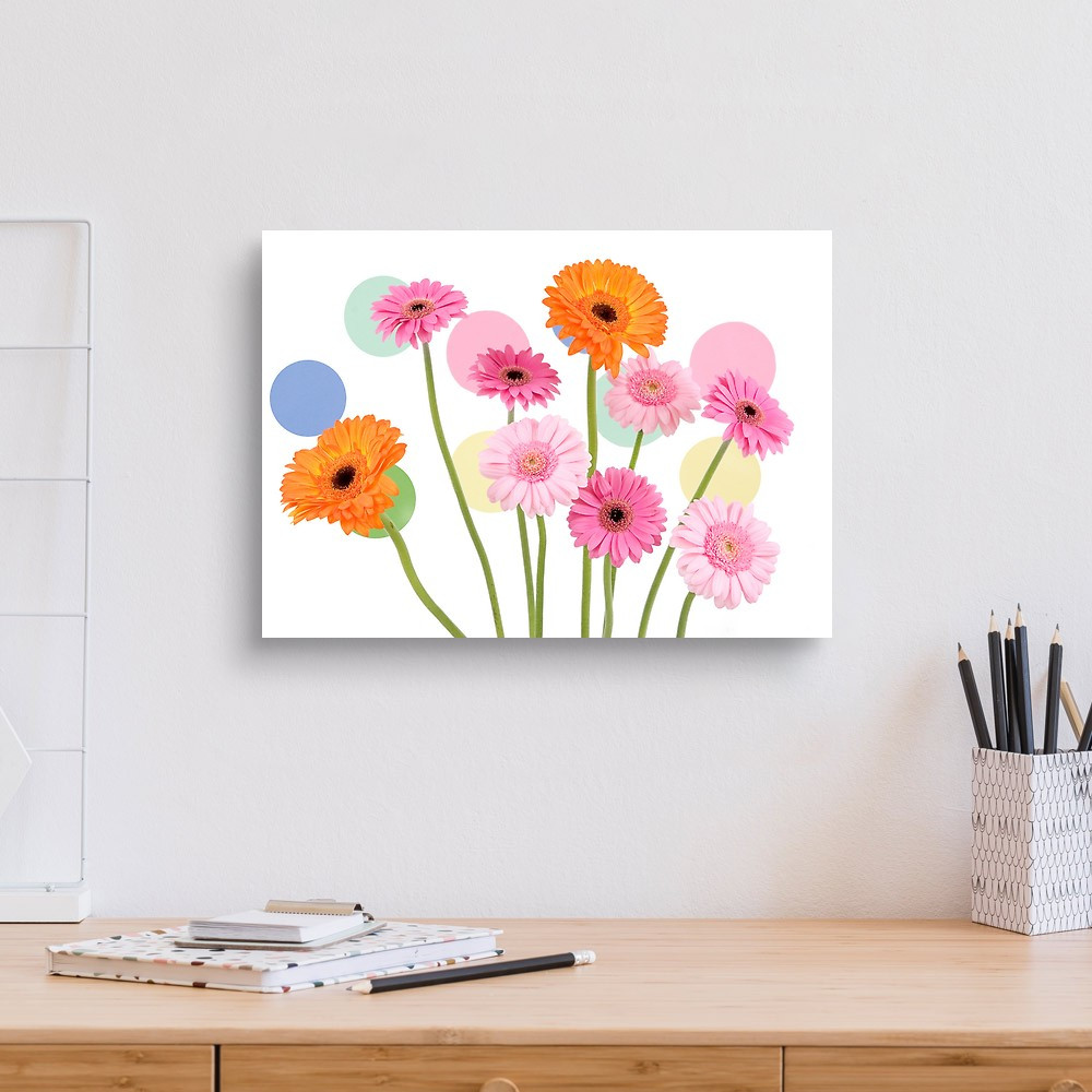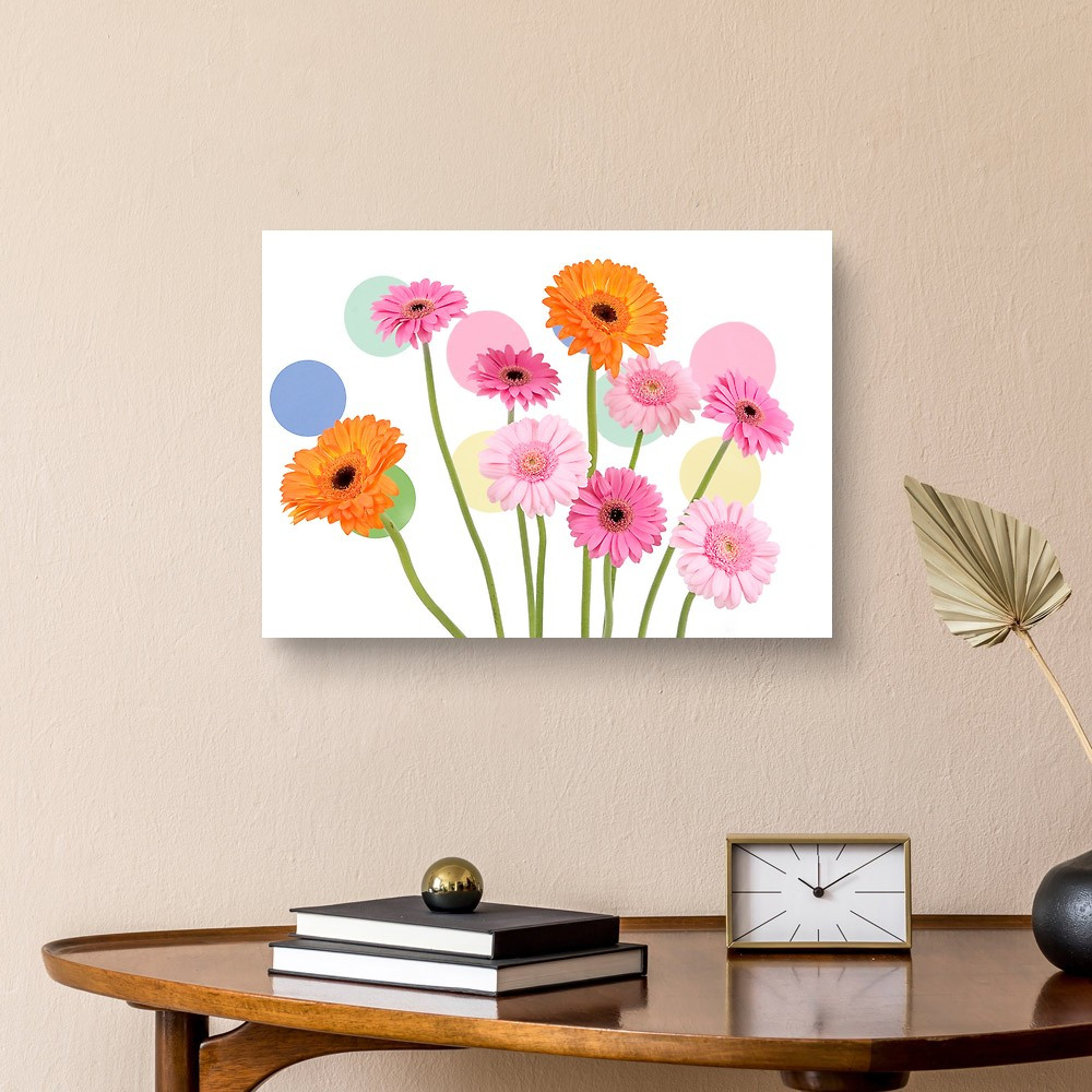Colorful Gerbera Daisies With Dot Design In Background Canvas Print