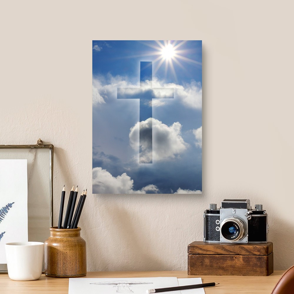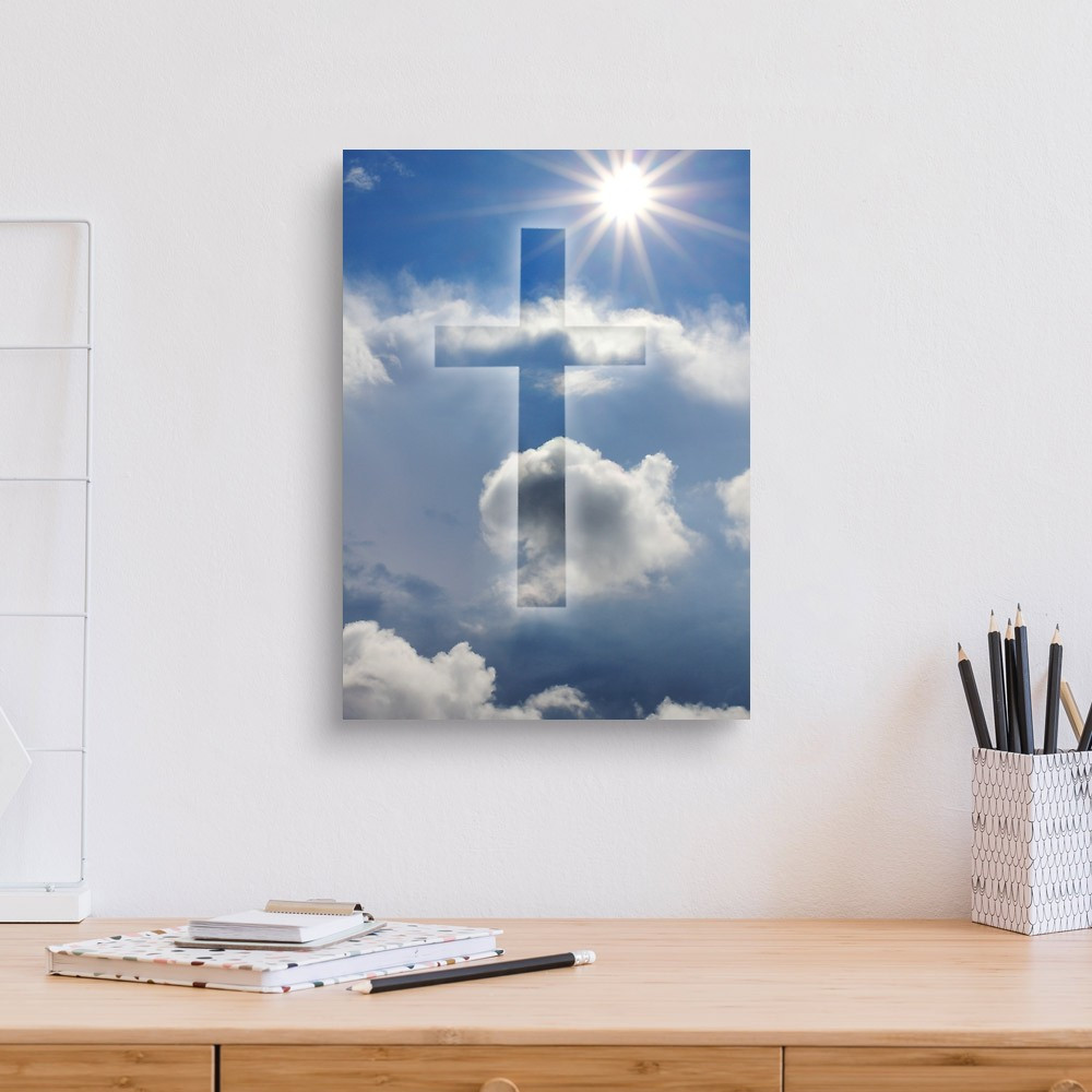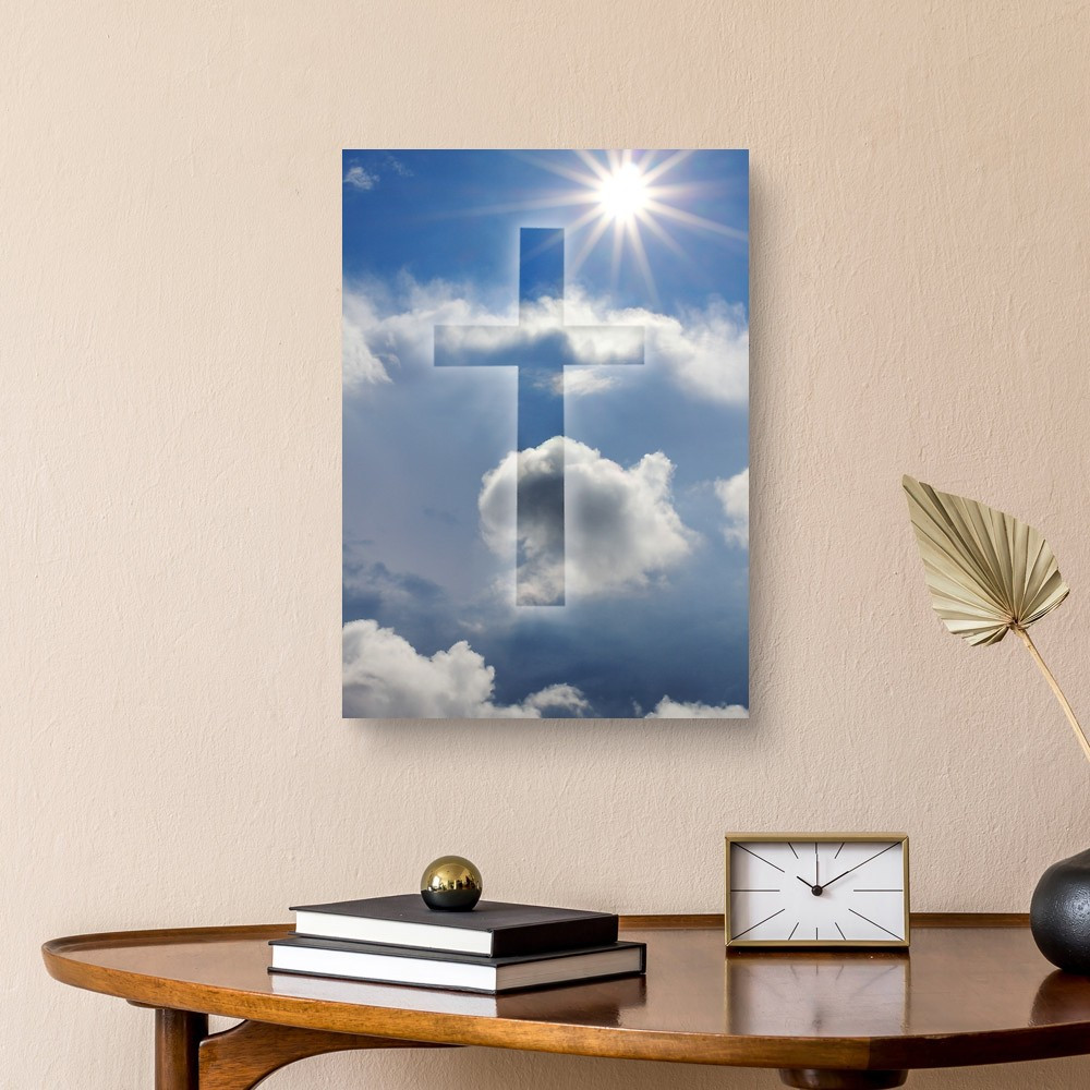 Cross From The Blue Sky Against A Background Of Dark Clouds Canvas Print