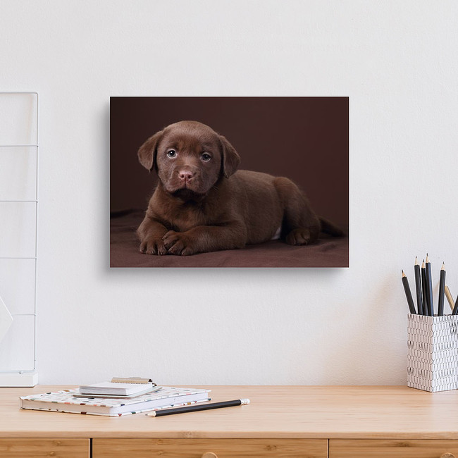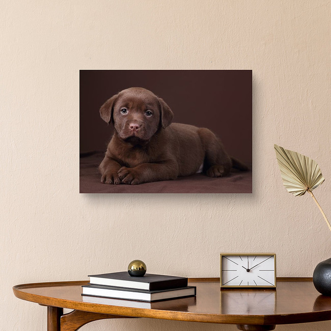 Cute Labrador Puppy Lying On Brown Background Canvas Print
