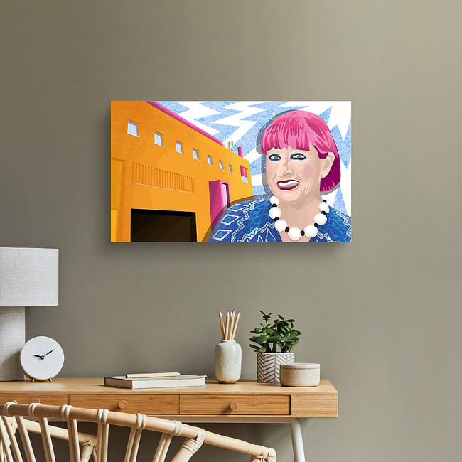 Dame Zandra Rhodes and the Fashion & Textiles Museum in Bermondsey, London. Canvas Print