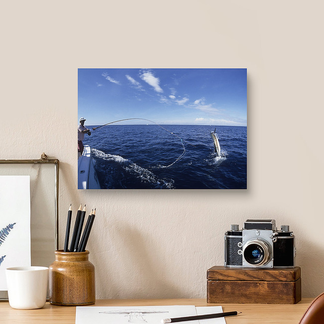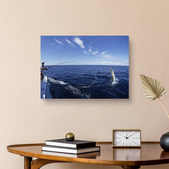 Deep Sea Fisherman Catching A Swordfish Canvas Print