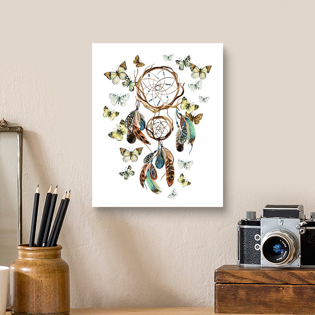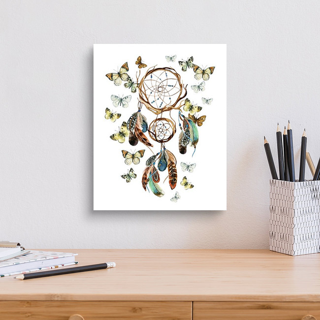 Dream Catcher With Feathers And Butterflies Canvas Print