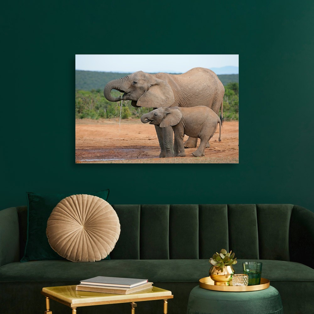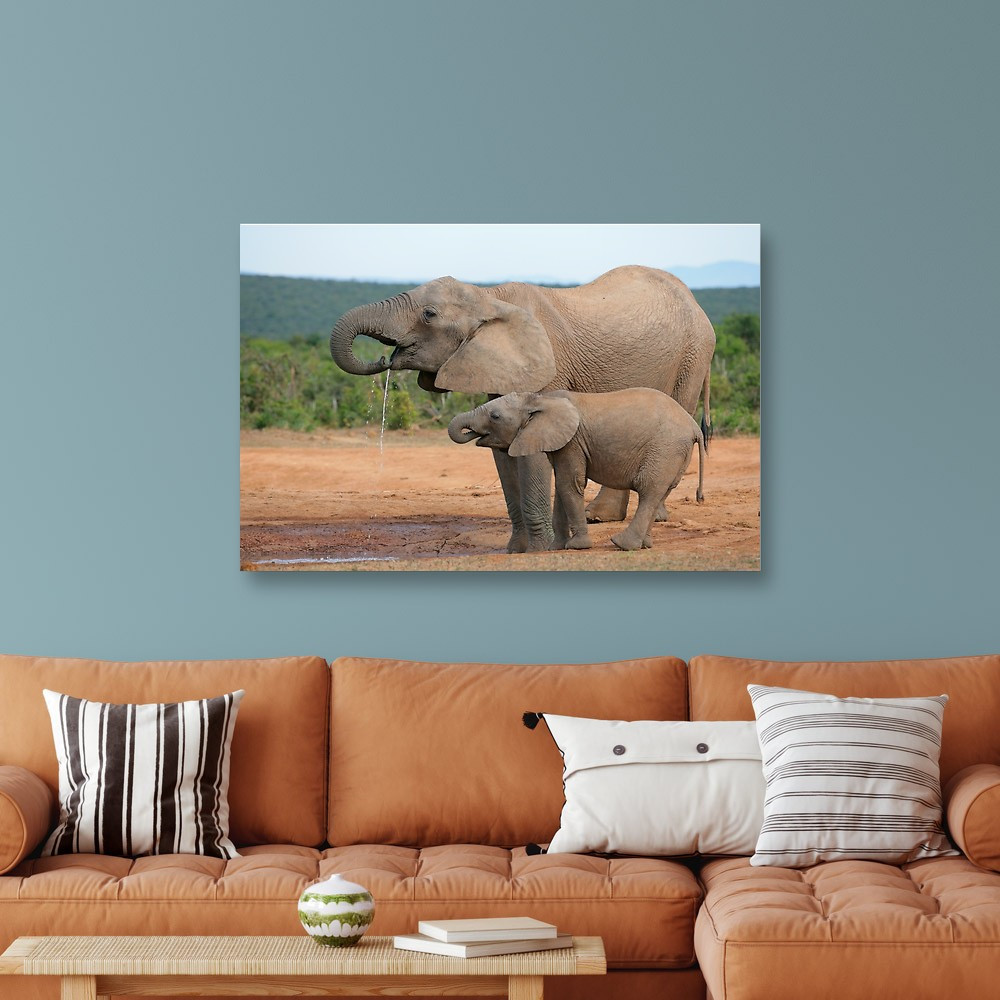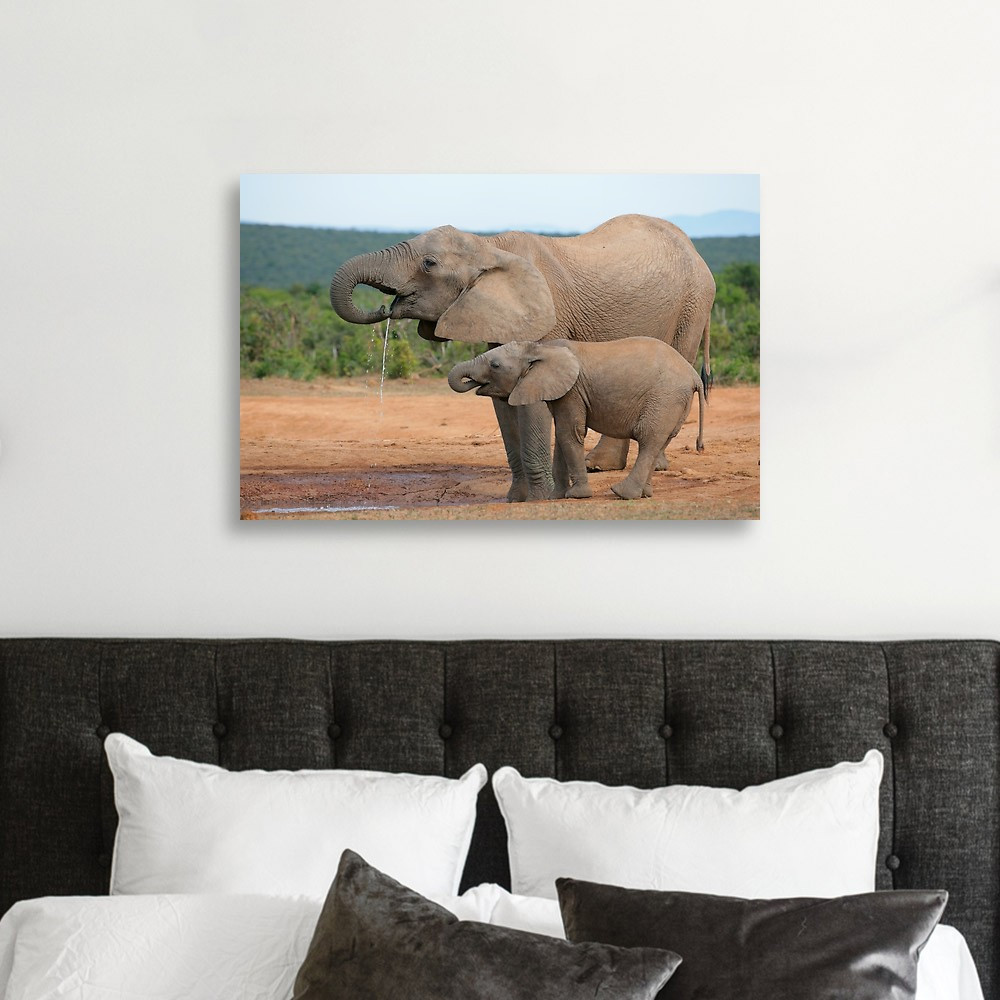 Drinking African Elephants (Loxodonta Africana), Addo Elephant Canvas Print
