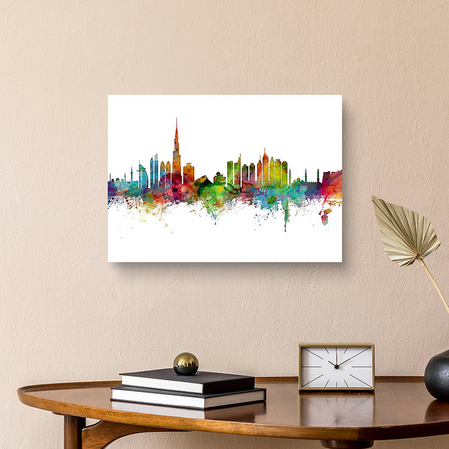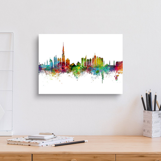 Watercolor art print of the skyline of Dubai, United Arab Emirates