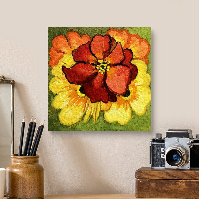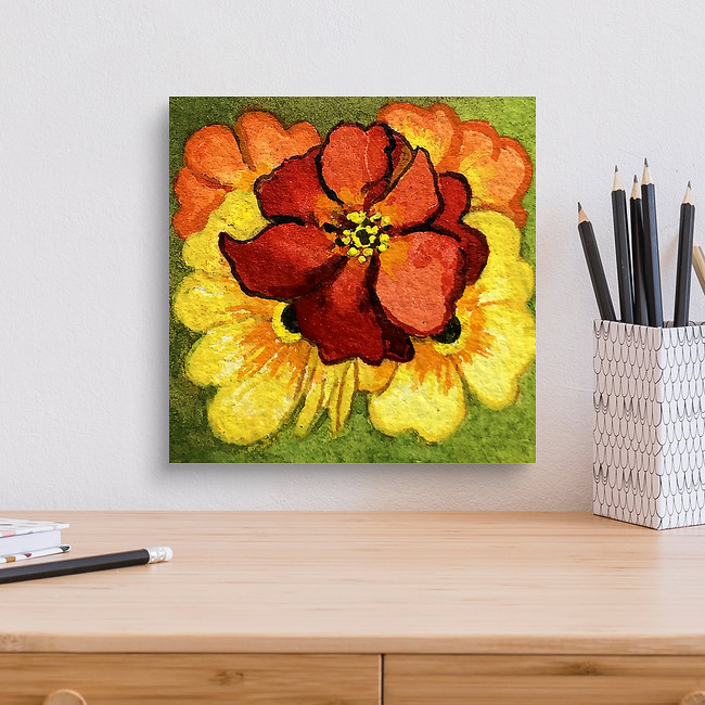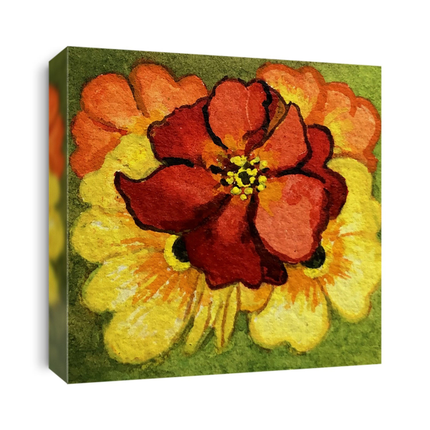 Five Primroses, red, yellow and orange (watercolour) Canvas Print