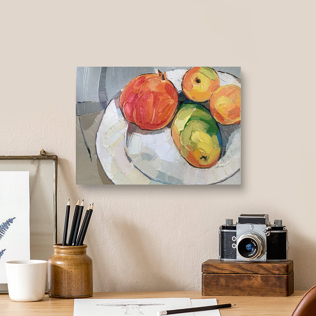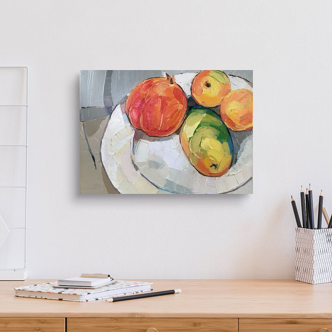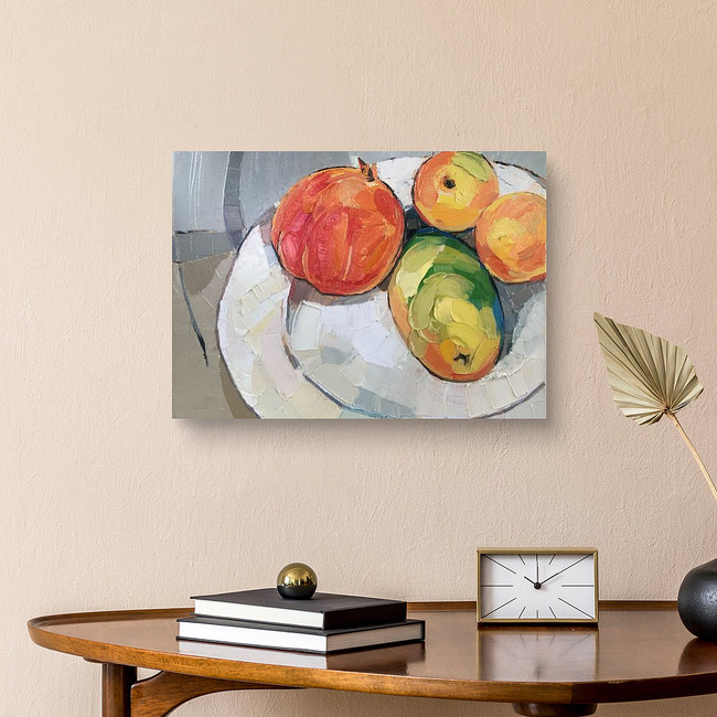 Fruits On Table, Still Life Painting, Knife Palette, Oil Acrylic On... Canvas Print
