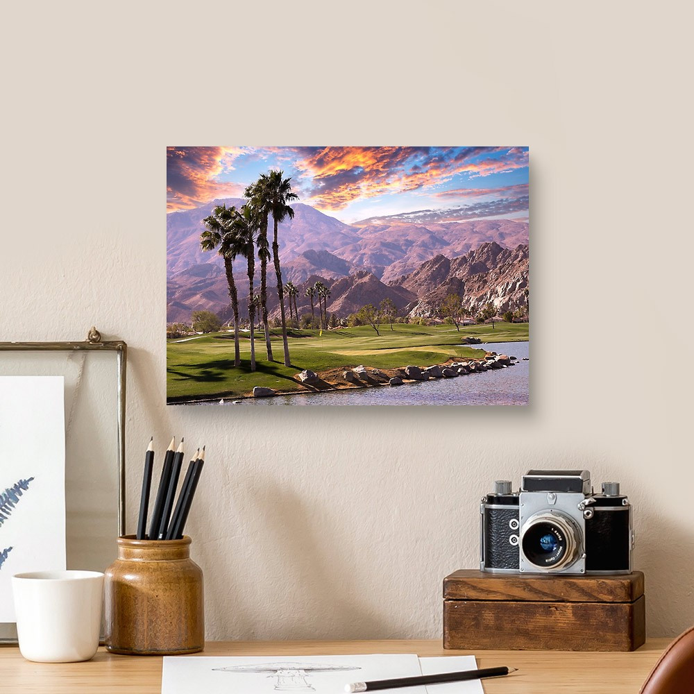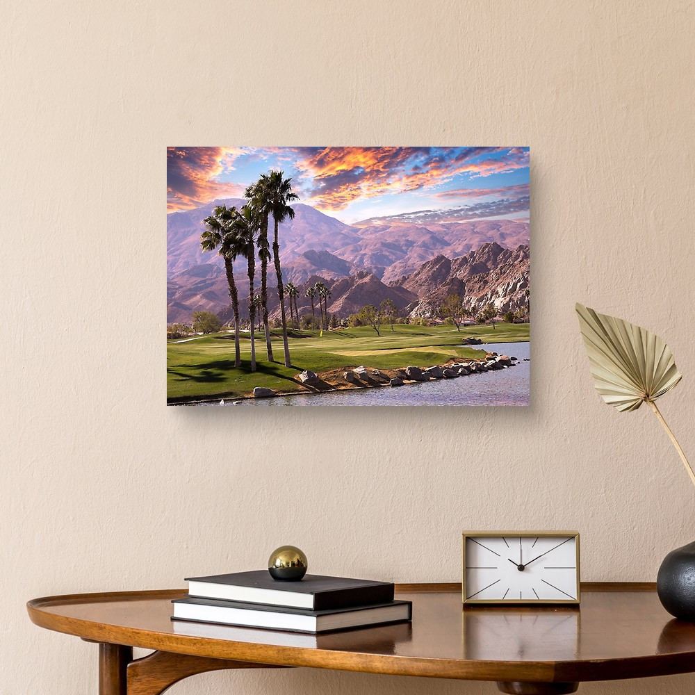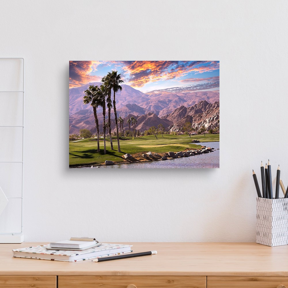 Golf Course At Sunset In Palm Springs, California, Usa Canvas Print