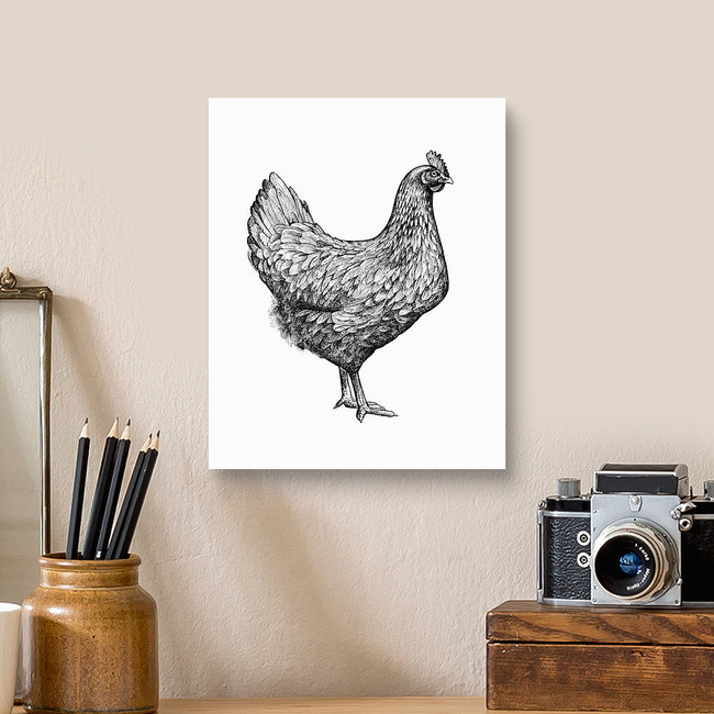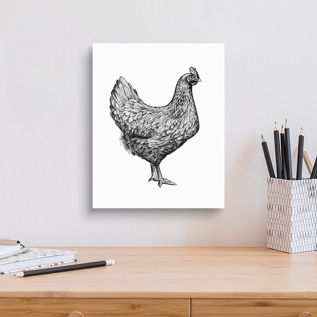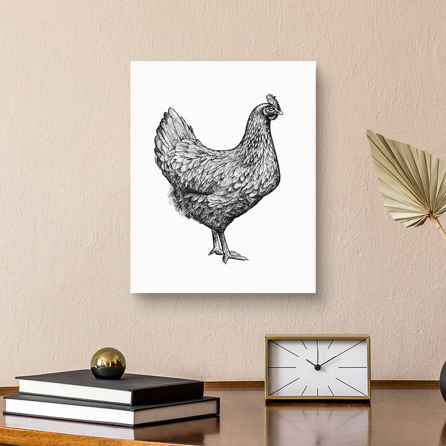 Gorgeous Drawing Of Chicken Or Hen In Retro Etching Or Woodcut Style Canvas Print