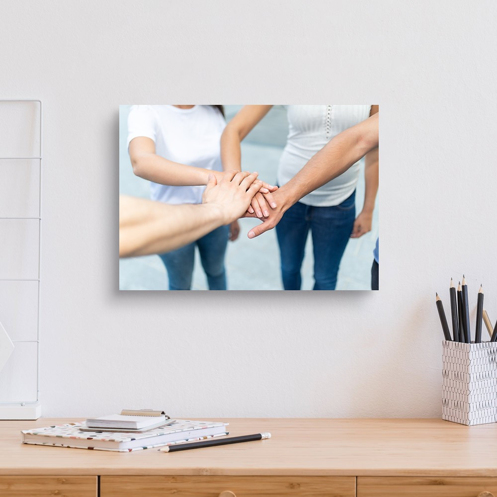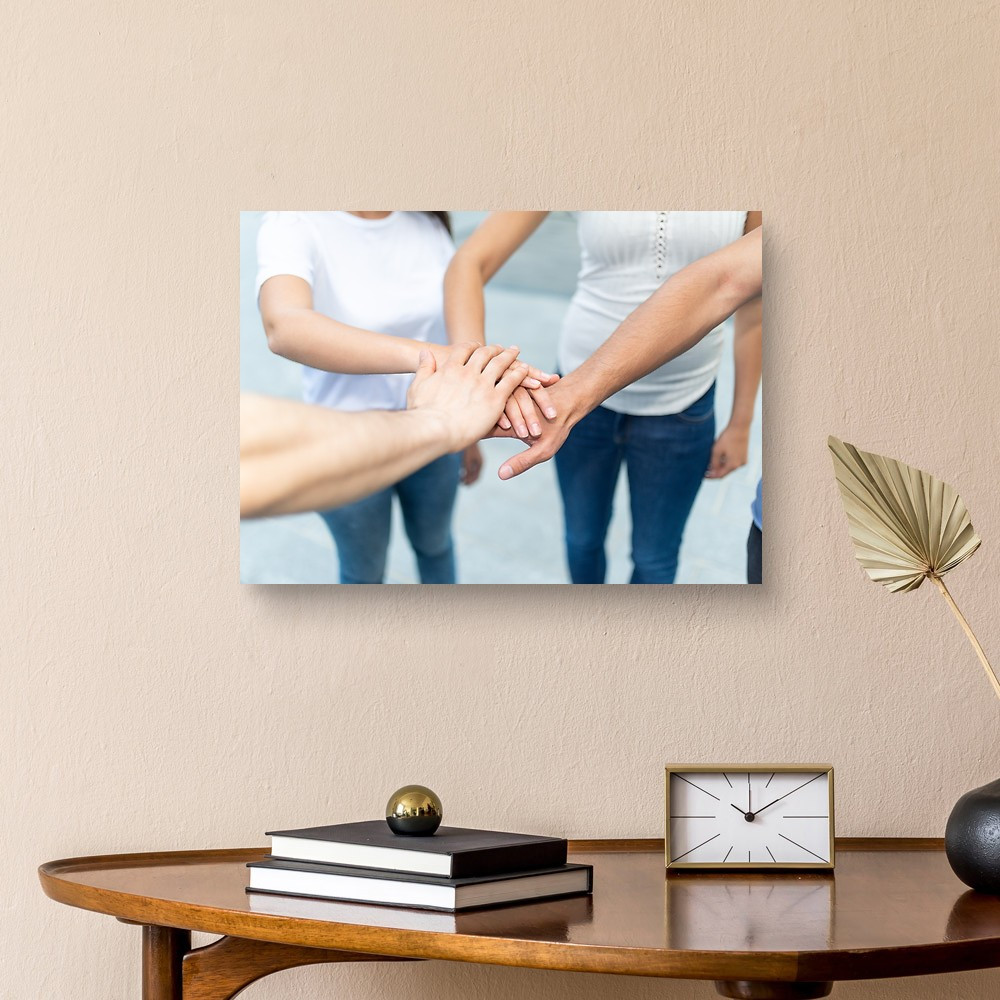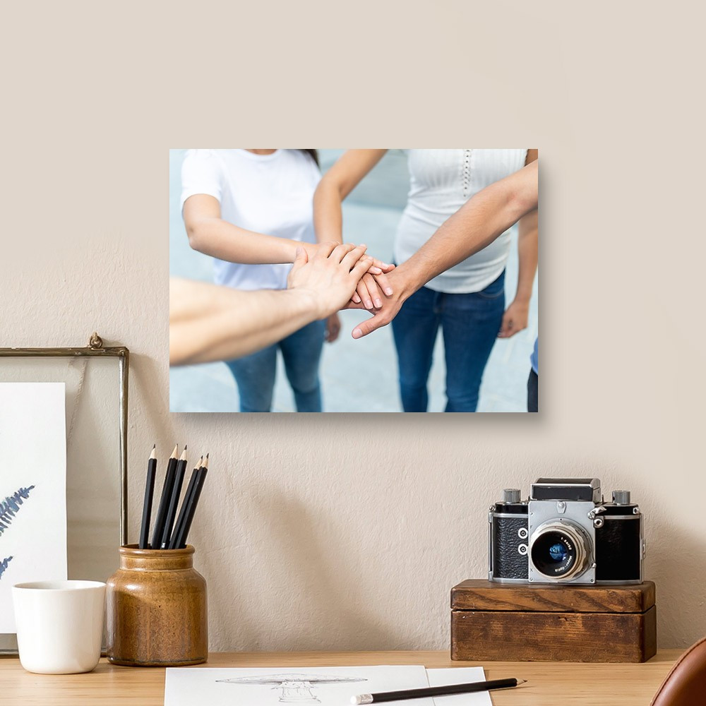 Group Of Friends Putting Their Hands Together, Friendship Concept Canvas Print